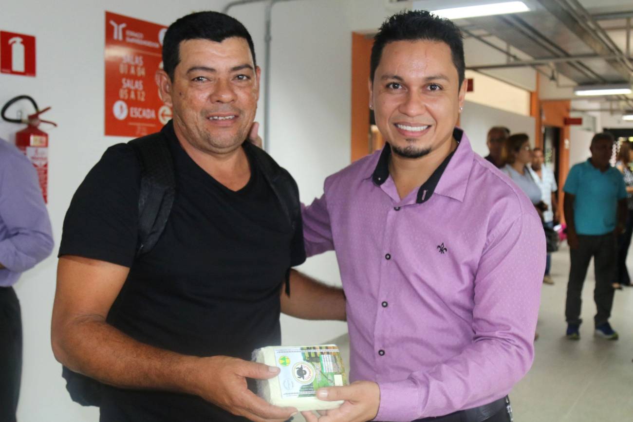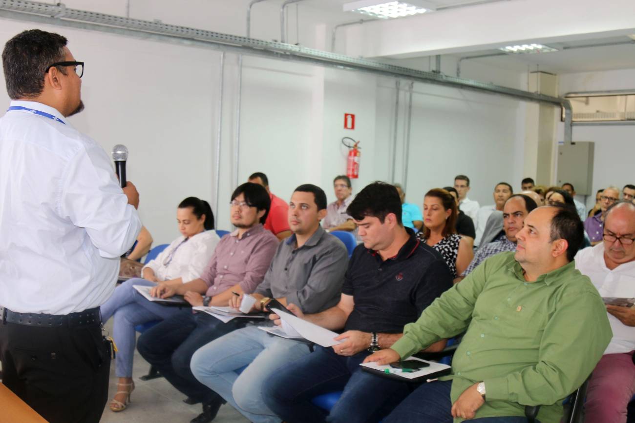 Produtores de queijo e leite do Arquipélago do Marajó fizeram uma visita técnica ao Parque de Ciência e Tecnologia Guamá (PCT Guamá), na segunda-feira (11), onde conheceram os laboratórios de Qualidade do Leite, Engenharia Biológica e Instrumentação para Produtos Agroindustriais, sendo dois específicos de leite e um de melhoramento genético de búfalas. Na foto, o coordenador de Prospecção e Transferência de Tecnologia do PCT Guamá, Milksom Campelo (d).