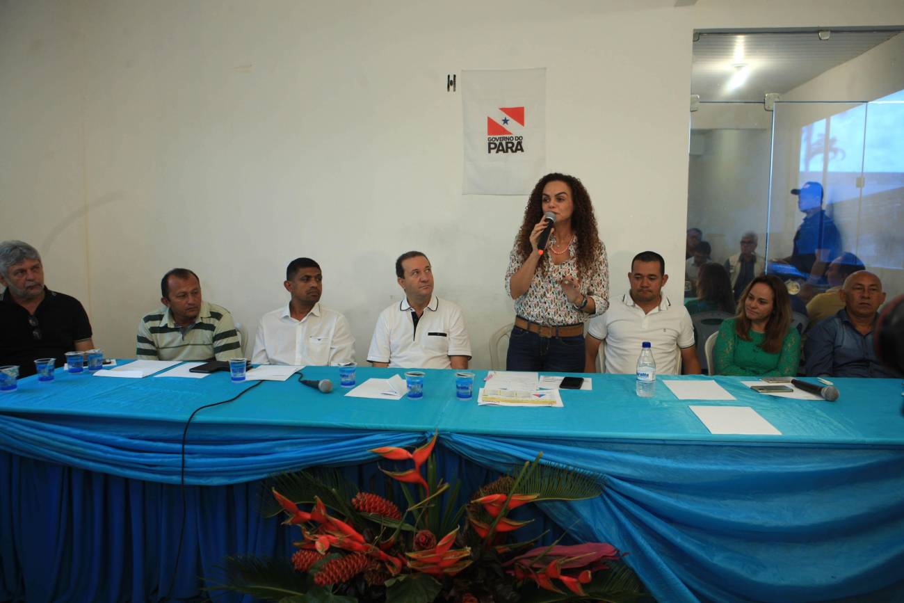 A agenda começou no município de Curuçá, com a assinatura da Ordem de Serviço de pavimentação de 6 km de vias urbanas através do Programa Asfalto na Cidade, um investimento de mais de R$2 milhões que vão beneficiar moradores como os do Bairro Alto. Na cerimônia, que aconteceu na sede da Prefeitura de Curuçá, o prefeito Jefferson Ferreira de Miranda, conhecido como “Tarrafa”, destacou as obras do Governo em seu município. Na foto, a secretária de Municípios Sustentáveis, Izabela Jatene