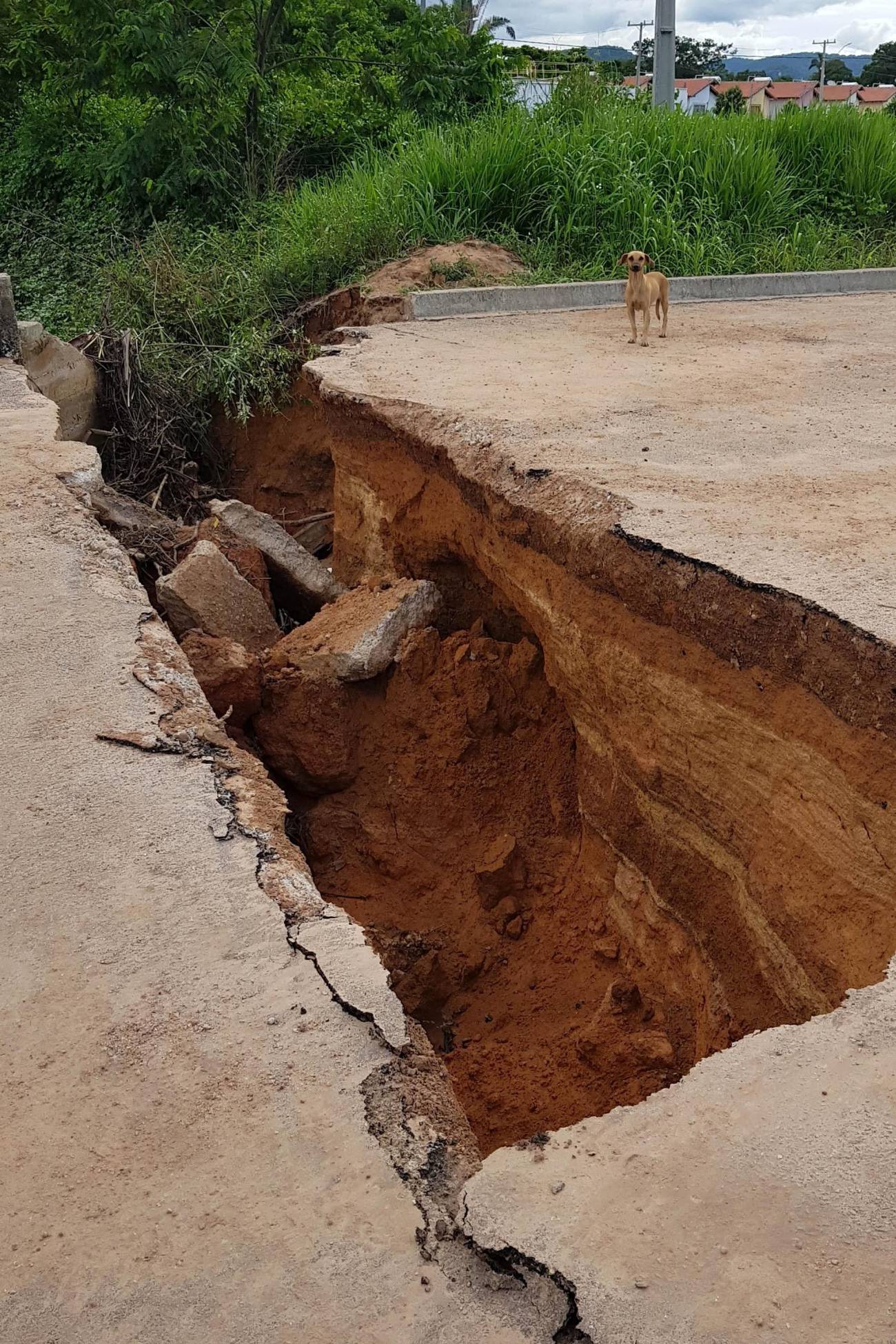 A chuva forte que caiu durante a tarde e a noite da última segunda-feira (26) em Redenção, provocou o rompimento de três represas em áreas privadas no município e, com isso, afetou 250 famílias em 12 bairros da cidade. A enxurrada também trouxe prejuízos ao trafego. Uma cratera foi formada na BR-158 (foto) no trecho entre Redenção e Santana do Araguaia. Além disso, há risco de desmoronamento de uma ponte na BR-155 próxima ao município.