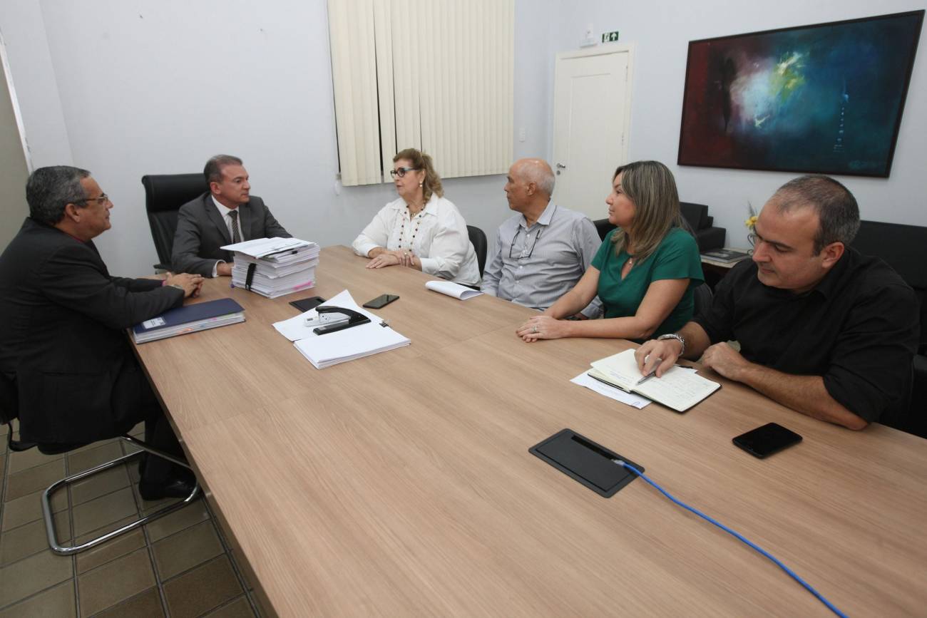 A comissão do governo atual, comandada pelo Procurador-Geral do Estado, Ophir Cavalcante Júnior (e), e pelo Auditor-Geral do Estado, Roberto Amoras, se reuniu nesta terça-feira (27), com os membros da comissão do governo eleito, Maria Eugenia Rio (d), Eduardo Ribeiro, Hana Sampaio Ghassan e Fabrício de Paula.
