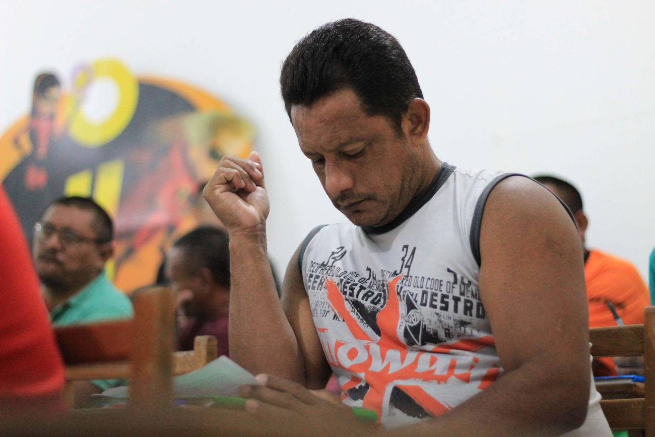 O interno Sandro Manuel, de 48 anos, vai prestar pela primeira vez vestibular para o Exame Nacional do Ensino Médio (Enem) para Pessoas Privadas de Liberdade (PPL). Foi dentro do Centro de Recuperação Agrícola Silvio Hall de Moura (CRASHM) que ele completou o ensino fundamental e agora finaliza o ensino médio. Para se preparar para a prova, o detento participou do “aulão” intensivo promovido na manhã desta quinta-feira (6), pela Fundação Pro Paz em parceria com a Secretaria de Educação do Pará (Seduc) e a Superintendência do Sistema Penitenciário do Estado do Pará (Susipe).