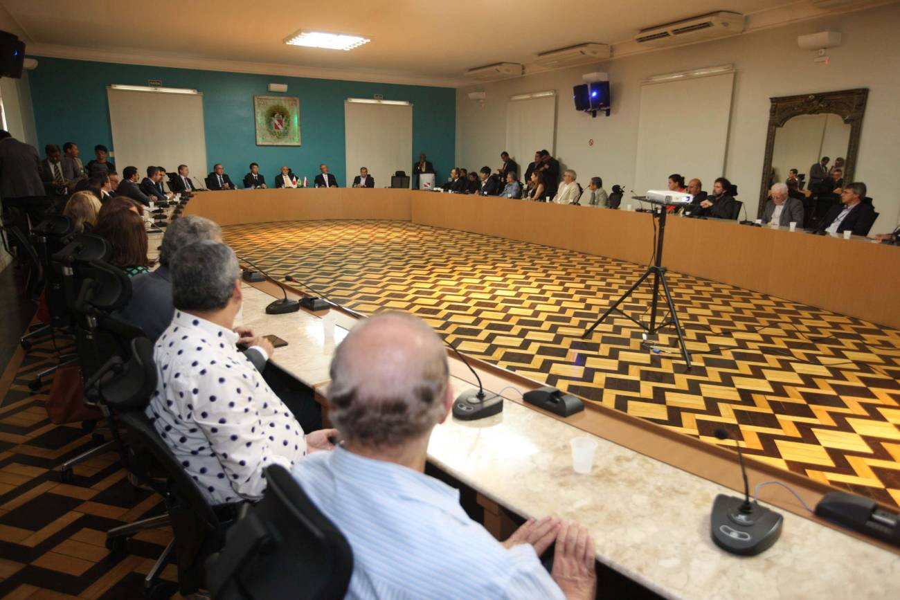 Governo do Estado, Agência de Cooperação Internacional do Japão (Jica) e Embaixada do Japão no Brasil assinaram no final da tarde desta sexta-feira a Ordem de Serviço que marca que marca o início das obras na Rodovia BR-316. As obras iniciam já na próxima segunda-feira.Com projeto arrojado, que trará grande reforma estrutural para a entrada da capital paraense, desde a rede de drenagem, até os chamados retoques finos, como paisagismo e moderna rede de iluminação pública em LED, abrange os municípios de Belém, Ananindeua e Marituba, em 10,8 km de extensão. As obras de reconstrução e requalificação incluem pistas com três faixas de rolagem nos dois sentidos, com pavimento flexível, uma faixa (em cada sentido) exclusiva para o BRT Metropolitano, duas ciclovias bidirecionais, gramado próximo à ciclovia para arborização, dois passeios para circulação de pedestres com 2,5m de largura, faixa de piso tátil e rampas de acessibilidade, de acordo com a legislação vigente, além de mobiliário urbano (bancos, lixeiras e abrigos em paradas de ônibus convencionais). FOTO: SIDNEY OLIVEIRA / AG. PARÁ DATA: 07.12.2018 BELÉM - PARÁ