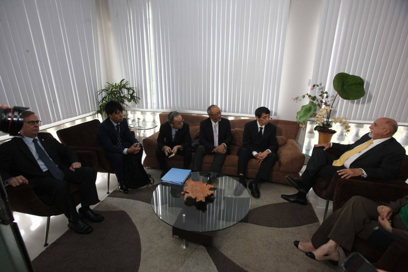 Governo do Estado, Agência de Cooperação Internacional do Japão (Jica) e Embaixada do Japão no Brasil assinaram no final da tarde desta sexta-feira a Ordem de Serviço que marca que marca o início das obras na Rodovia BR-316. As obras iniciam já na próxima segunda-feira.Com projeto arrojado, que trará grande reforma estrutural para a entrada da capital paraense, desde a rede de drenagem, até os chamados retoques finos, como paisagismo e moderna rede de iluminação pública em LED, abrange os municípios de Belém, Ananindeua e Marituba, em 10,8 km de extensão. As obras de reconstrução e requalificação incluem pistas com três faixas de rolagem nos dois sentidos, com pavimento flexível, uma faixa (em cada sentido) exclusiva para o BRT Metropolitano, duas ciclovias bidirecionais, gramado próximo à ciclovia para arborização, dois passeios para circulação de pedestres com 2,5m de largura, faixa de piso tátil e rampas de acessibilidade, de acordo com a legislação vigente, além de mobiliário urbano (bancos, lixeiras e abrigos em paradas de ônibus convencionais). Na foto, o governador do Estado, Simção Jatene (2º da esq/dir) e representante da Agência de Cooperação Internacional do Japão (Jica) no Brasil, Sr. Akio Saito (3º da esq/dir). FOTO: SIDNEY OLIVEIRA / AG. PARÁ DATA: 07.12.2018 BELÉM - PARÁ