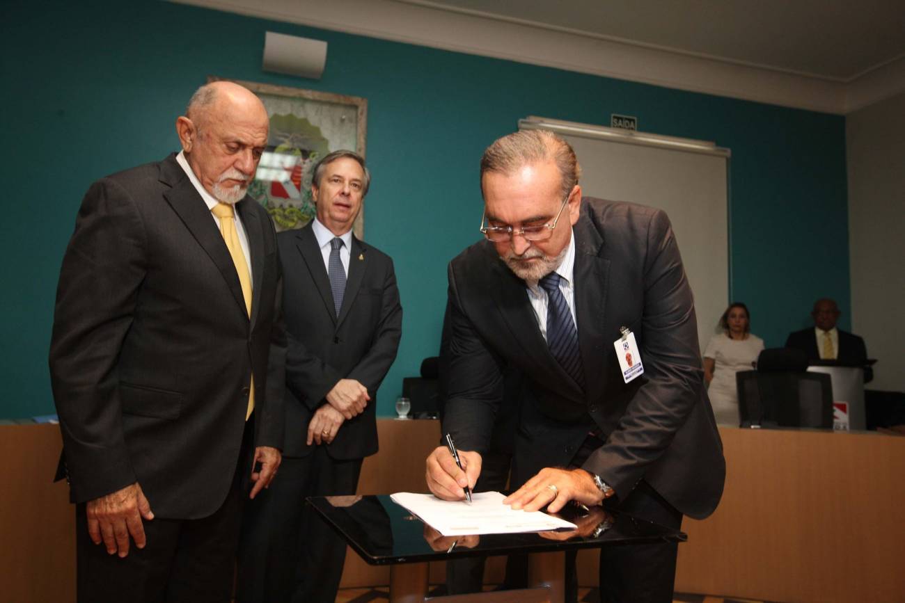 Governo do Estado, Agência de Cooperação Internacional do Japão (Jica) e Embaixada do Japão no Brasil assinaram no final da tarde desta sexta-feira a Ordem de Serviço que marca que marca o início das obras na Rodovia BR-316. As obras iniciam já na próxima segunda-feira.Com projeto arrojado, que trará grande reforma estrutural para a entrada da capital paraense, desde a rede de drenagem, até os chamados retoques finos, como paisagismo e moderna rede de iluminação pública em LED, abrange os municípios de Belém, Ananindeua e Marituba, em 10,8 km de extensão. As obras de reconstrução e requalificação incluem pistas com três faixas de rolagem nos dois sentidos, com pavimento flexível, uma faixa (em cada sentido) exclusiva para o BRT Metropolitano, duas ciclovias bidirecionais, gramado próximo à ciclovia para arborização, dois passeios para circulação de pedestres com 2,5m de largura, faixa de piso tátil e rampas de acessibilidade, de acordo com a legislação vigente, além de mobiliário urbano (bancos, lixeiras e abrigos em paradas de ônibus convencionais). Na foto (esq/dir), o embaixador do Japão no Brasil, Akira  Yamada, o governador do Estado do Pará, Simão Jatene e o representante da Agência de Cooperação Internacional do Japão (Jica) no Brasil, Sr. Akio Saito.