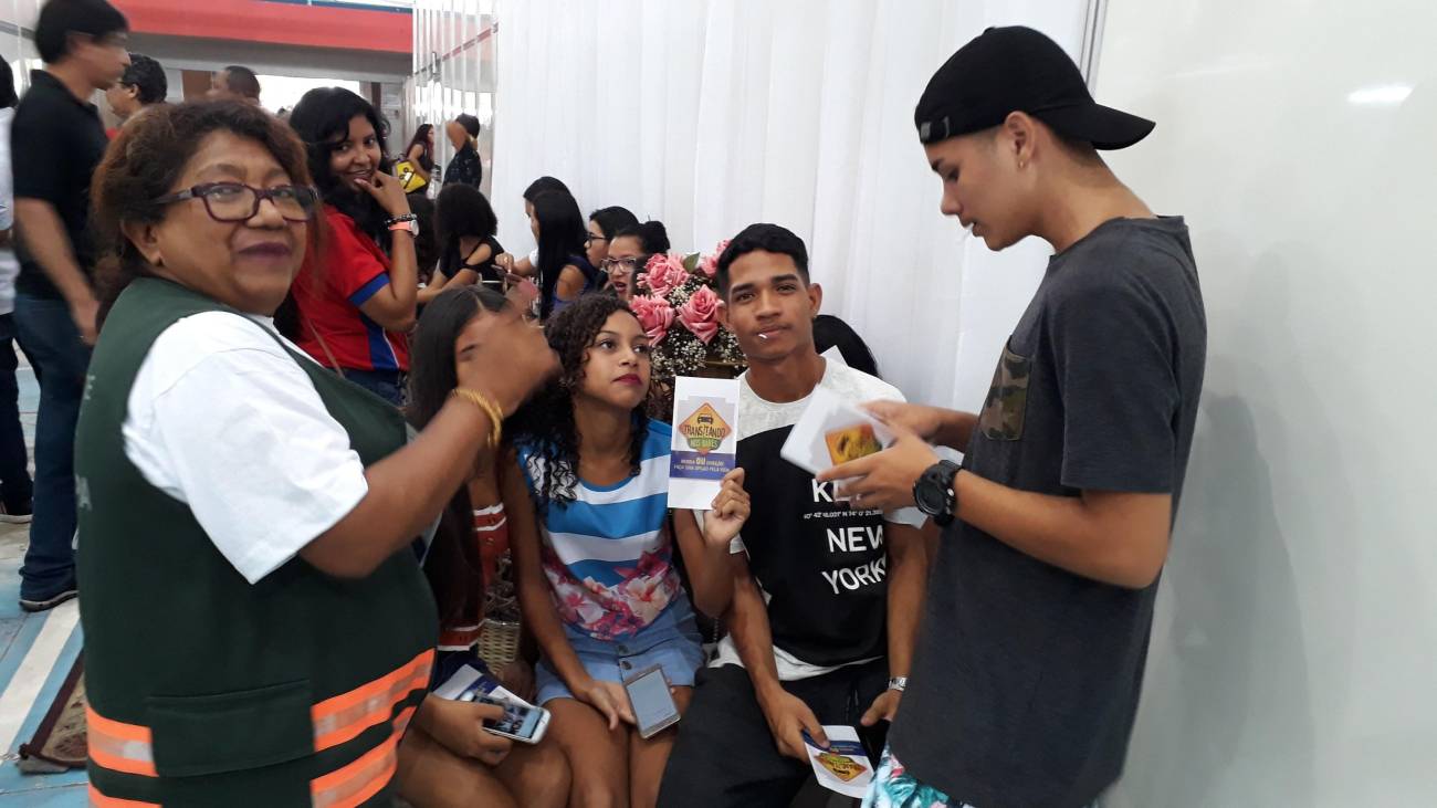 A Coordenadoria de Educação do Detran participa da IV Feira do Livro do município de Marituba (foto), na Região Metropolitana de Belém. O convite partiu da Diretoria Municipal de Trânsito (Diretran) em função da parceria mantida com a autarquia estadual em ações anteriores. Uma média de 200 estudantes foram abordados pela equipe composta por quatro servidores do departamento. A coordenadora do grupo,Leila Santos, explica que o foco do trabalho do Detran são os estudantes do município que estão marcando presença nos estandes de venda do Livro. “ Eles são muito receptivos. Escutam atentamente nossas orientações. Fazem perguntas. Os adolescentes questionam com frequência sobre idade mínima para a retirada da habilitação. Explicamos que no Brasil, somente com 18 anos é permitido ao adolescente tirar a CNH”.