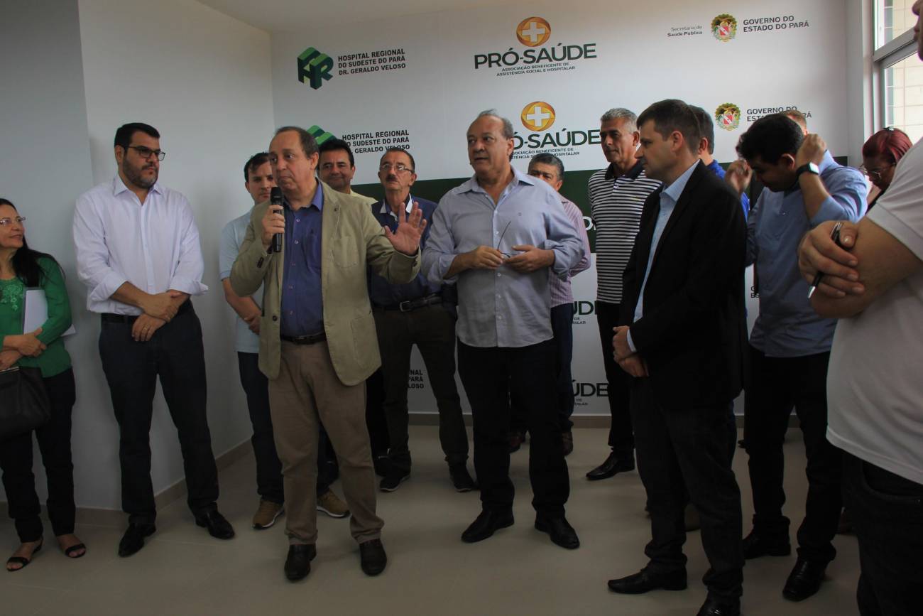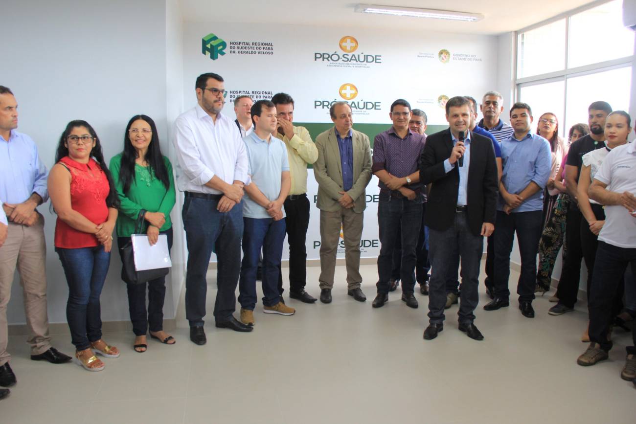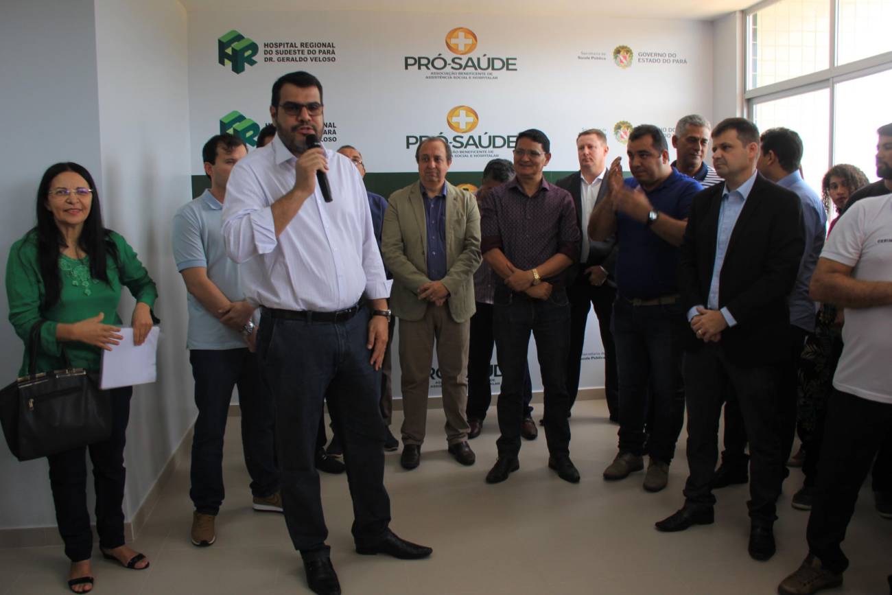 Hospital Regional de Marabá amplia serviço para atender pacientes com insuficiência renal Neste sábado, 8/12, o serviço de hemodiálise foi ampliado no sudeste do Pará, com a entrega do primeiro bloco do projeto de reforma e ampliação do Hospital Regional do Sudeste do Pará - Dr. Geraldo Veloso (HRSP), em Marabá (PA). Com mais de 900 metros quadrados construídos, três andares e mais de R$ 5 milhões investidos em sua construção e aquisição de equipamentos, o prédio abrigará além de 20 máquinas de hemodiálise, a área administrativa e o Centro de Ensino e Pesquisa, o que amplia a vocação da Unidade que passa a ser um centro formador de profissionais da saúde na região. A cerimônia de entrega reuniu autoridades como o secretário de Estado de Saúde Pública do Pará, Vitor Mateus (ao microfone), o prefeito de Marabá, Sebastião Miranda Filho, o presidente da Câmara Municipal de Marabá, Pedro Corrêa, o diretor Operacional da Pró-Saúde Associação Beneficente de Assistência Social e Hospitalar no Pará, Rogério Kuntz, e o diretor Hospitalar da Unidade, Valdemir Girato, além de representantes dos 22 municípios de abrangência do Hospital.
