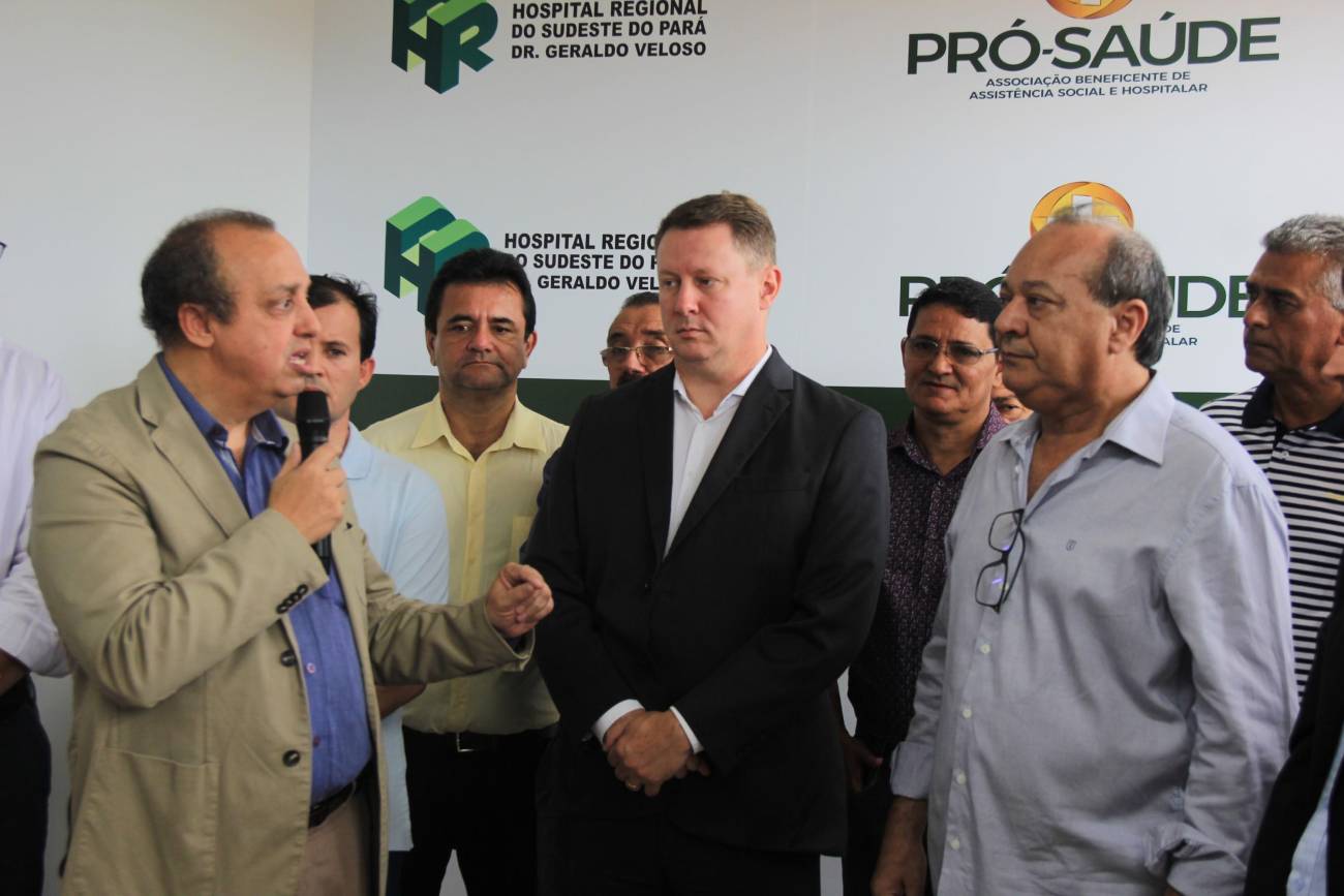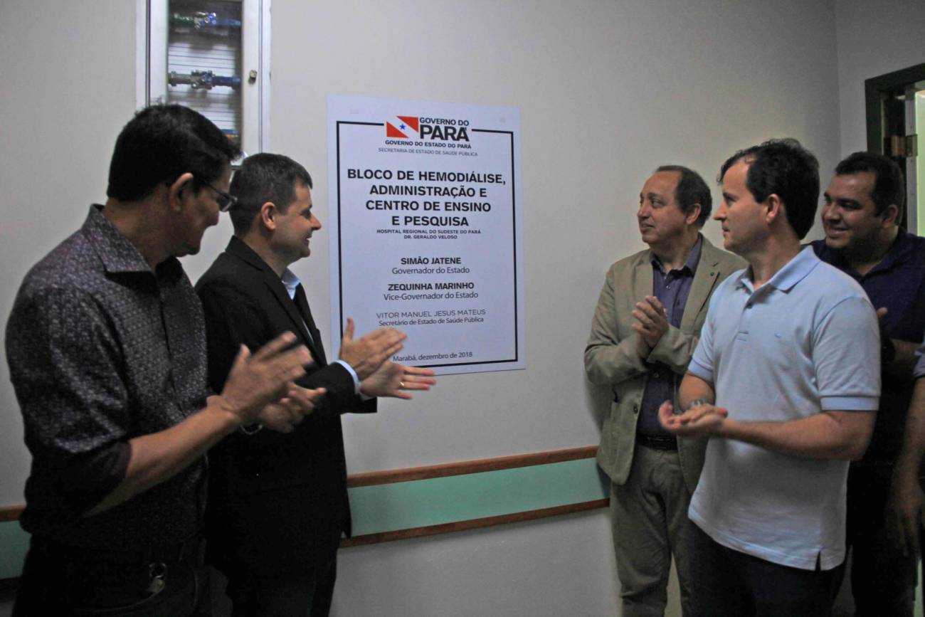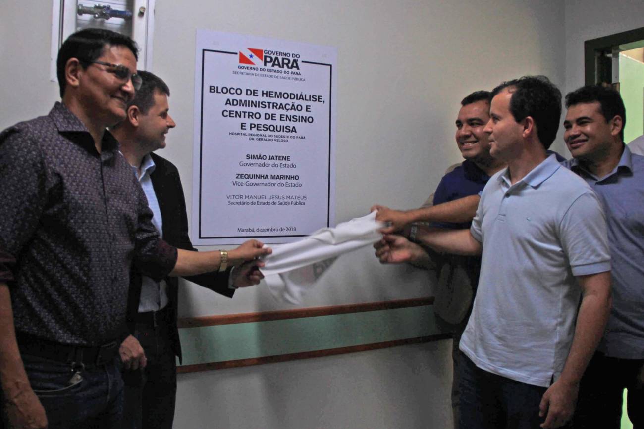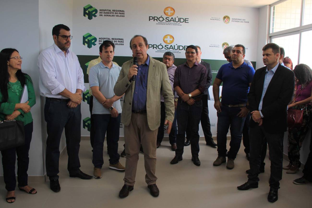 Hospital Regional de Marabá amplia serviço para atender pacientes com insuficiência renal Neste sábado, 8/12, o serviço de hemodiálise foi ampliado no sudeste do Pará, com a entrega do primeiro bloco do projeto de reforma e ampliação do Hospital Regional do Sudeste do Pará - Dr. Geraldo Veloso (HRSP), em Marabá (PA). Com mais de 900 metros quadrados construídos, três andares e mais de R$ 5 milhões investidos em sua construção e aquisição de equipamentos, o prédio abrigará além de 20 máquinas de hemodiálise, a área administrativa e o Centro de Ensino e Pesquisa, o que amplia a vocação da Unidade que passa a ser um centro formador de profissionais da saúde na região. A cerimônia de entrega reuniu autoridades como o secretário de Estado de Saúde Pública do Pará, Vitor Mateus (ao microfone), o prefeito de Marabá, Sebastião Miranda Filho, o presidente da Câmara Municipal de Marabá, Pedro Corrêa, o diretor Operacional da Pró-Saúde Associação Beneficente de Assistência Social e Hospitalar no Pará, Rogério Kuntz, e o diretor Hospitalar da Unidade, Valdemir Girato, além de representantes dos 22 municípios de abrangência do Hospital.