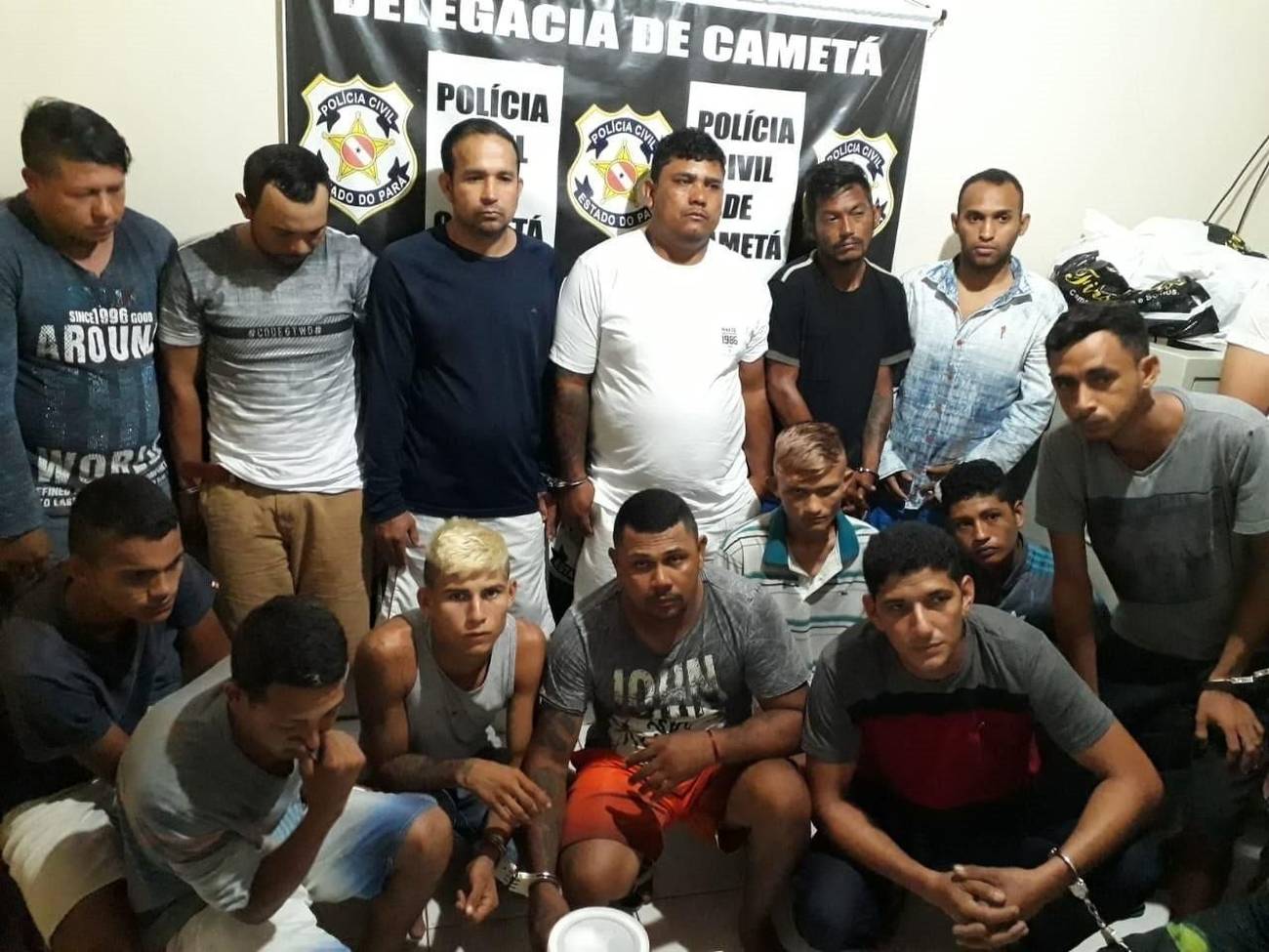 A Polícia Civil deflagrou na manhã desta quinta-feira (13), em Cametá, nordeste paraense, uma operação para cumprimento de mais de 30 mandados judiciais. São, ao todo, 27 mandados de prisão preventiva e outros sete de busca e apreensão. Todos os alvos da operação são apontados em investigações como envolvidos com o tráfico de drogas e facções criminosas. No total, 25 pessoas (foto) foram presas durante a operação, encerrada no final da manhã. Os presos são, ao todo, 18 homens e sete mulheres. Cinco pessoas foram presas em flagrante por crimes como tráfico de drogas e posse ilegal de arma de fogo. Foram apreendidas cinco armas de fogo - três pistolas, um revólver calibre 32 e uma espingarda, além de dezenas de munições de calibres como .38, .32 e 765. Além disso, foram apreendidos 50 gramas de óxi de cocaína e R$ 40 mil em dinheiro resultante do tráfico de drogas. No total, 150 policiais e 40 viaturas policiais estiveram em atuação na operação, que é resultado de investigações realizadas pela equipe policial de Cametá, com apoio da Superintendência Regional do Baixo Tocantins e Núcleo de Inteligência Policial (NIP).