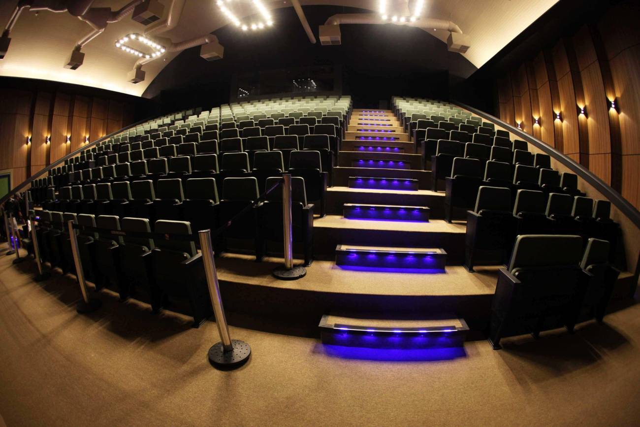 O teatro (foto) é uma construção de arquitetura contemporânea que dialoga com o ecletismo do antigo prédio escolar. Com uma fachada interna revestida com um gigantesco pano de vidro, o edifício abriga espaço com os mais adequados recursos para a apresentação de espetáculos de qualquer natureza, além do teatro, pode receber eventos culturais em geral. Tem 300 lugares e um palco medindo 14 m de boca e 7 m de profundidade;