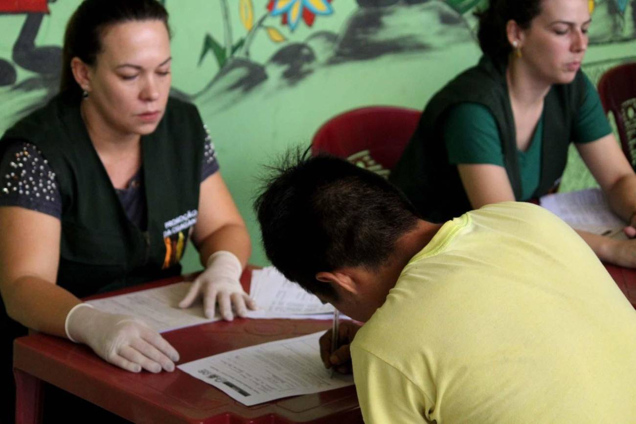 O Departamento Penitenciário Nacional (Depen), órgão vinculado ao Ministério da Justiça e Segurança Pública, realizou um mutirão do projeto Identidade Cidadã, nos dias 19 e 20 de dezembro, no Presídio Estadual Metropolitano (PEM) III. A ação teve como objetivo emitir a segunda via de certidões de nascimento ou de casamento para pessoas privadas de liberdade. O projeto é uma parceria do Depen com a Associação de Notários e Registradores do Brasil (Anoreg) e a Superintendência do Sistema Penitenciário do Pará (Susipe). A partir de um levantamento feito pelos assistentes sociais do PEM III, foi constatada a necessidade de emitir a segunda via da certidão de nascimento para 154 internos. FOTO: VELOSO JÚNIOR / ASCOM SUSIPE DATA: 20.12.2018 SANTA IZABEL - PARÁ