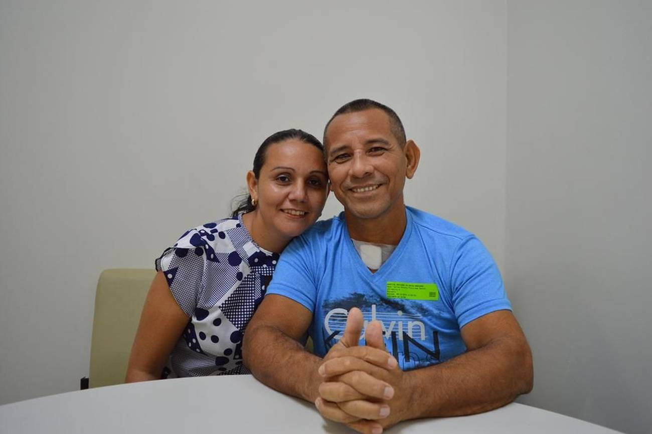 A equipe assistencial do Hospital Regional do Baixo Amazonas (HRBA), em Santarém (PA), tem comemorado marcas importantes no combate à infecção na Unidade de Terapia Intensiva (UTI) Adulto. Há mais de 365 dias, por exemplo, não são registrados casos de infecção da corrente sanguínea associada a cateter venoso central e, há mais de 130 dias, os pacientes não adquirem infecção do trato urinário associado a dispositivos invasivos. Os avanços são frutos de investimento em tecnologias e capacitação dos profissionais. As reduções nos indicadores de infeção hospitalar têm relação direta com a participação do Hospital no projeto colaborativo “Melhorando a Segurança do Paciente em Larga Escala no Brasil”, que faz parte do “Programa de Apoio ao Desenvolvimento Institucional do SUS (Proadi-SUS)”, do Ministério da Saúde, em parceria com hospitais de excelência. O projeto começou em dezembro de 2017. Na foto, o sargento da PM, Carlos dos Santos, de 53 anos (d) e sua esposa, Diracy Vieira, de 33 anos.