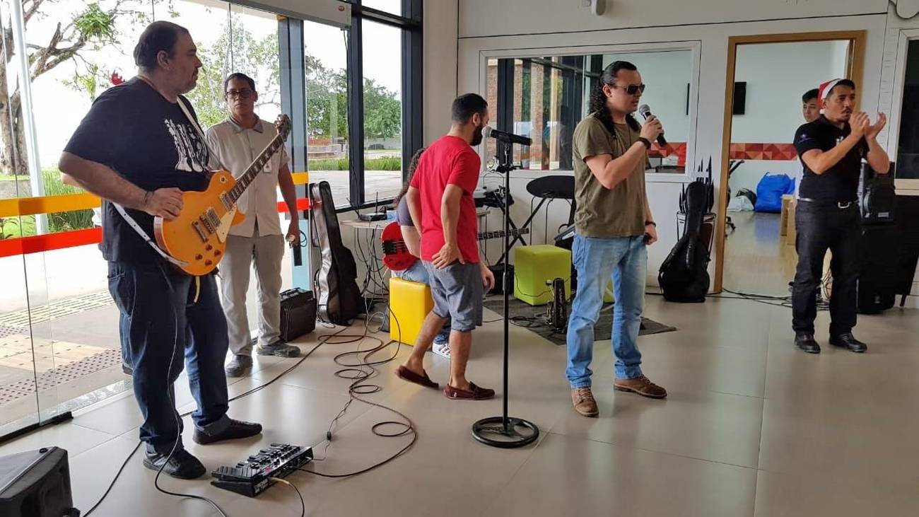 Muita emoção, alegria e diversão marcaram a confraternização de Natal promovida pelo Centro Integrado de Inclusão e Reabilitação (CIIR), que reuniu centenas de pessoas, no sábado (22). Com a participação de colaboradores, usuários e acompanhantes de pacientes, o evento antecipou o Natal de todos que integram o complexo, inaugurado este ano, e que presta assistência de alta complexidade para Pessoas com Deficiência (PcD) física, mental, intelectual, visual e auditiva. Sem esconder sua emoção, o gestor do Centro de Reabilitação, José Neto, afirma que a primeira confraternização foi além da expectativa. “A emoção tomou conta dos colaboradores, usuários e/ou responsáveis. Foi um misto de harmonia, carinho e alegria que contagiou todos. As pessoas, as apresentações, a festa si, tudo teve muito amor envolvido, evidenciando o verdadeiro espírito de Natal. Aqui, a inclusão se faz plena e sem qualquer diferença". Na foto, a Banda Acorda Alice. FOTO: ASCOM / INDSH DATA: 24.12.2018 BELÉM - PARÁ