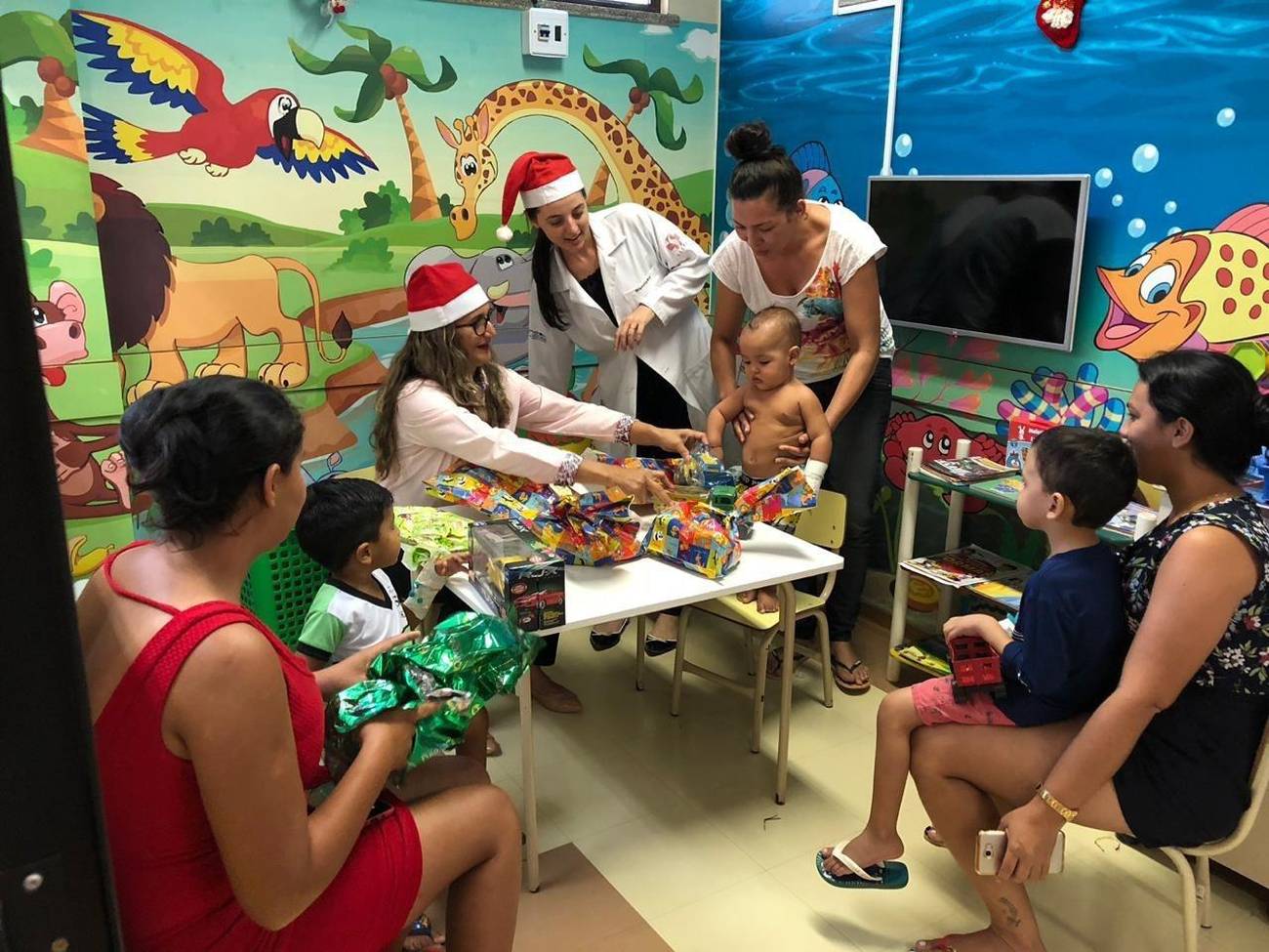 O Grupo de Trabalho de Humanização (GTH) do Hospital Geral de Tailândia (HGT) encerrou mais uma edição da campanha “Doe brinquedo e faça uma criança feliz”, com distribuição de brinquedos novos para crianças internadas e em atendimento no hospital (foto), antecipando o Natal dessas famílias também com entrega de cestas natalinas. Os donativos foram arrecadados entre os colaboradores e comerciantes da cidade. As ações de Natal foram realizadas ao longo do mês de dezembro. Entre elas, a colaboração ao Projeto ‘Padrinho Solidário’, que atende cartas com pedidos de presentes de Natal feito por 70 alunos da Escola José Alfredo de Souza, localizada no bairro de Fátima. Houve ainda apresentação de peça teatral e muitas brincadeiras. FOTO: ASCOM / HGT TAILÂNDIA DATA: 24.12.2018 TAILÂNDIA - PARÁ