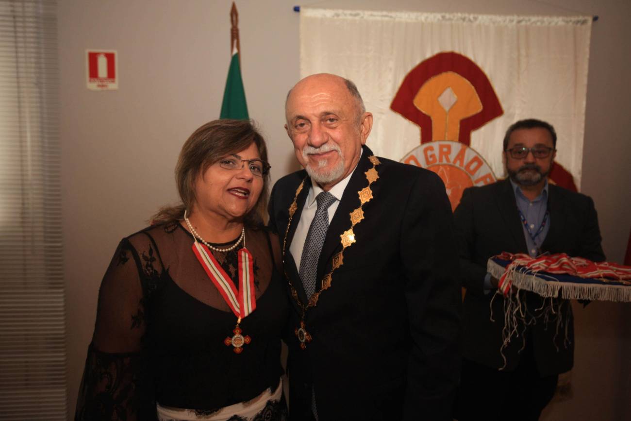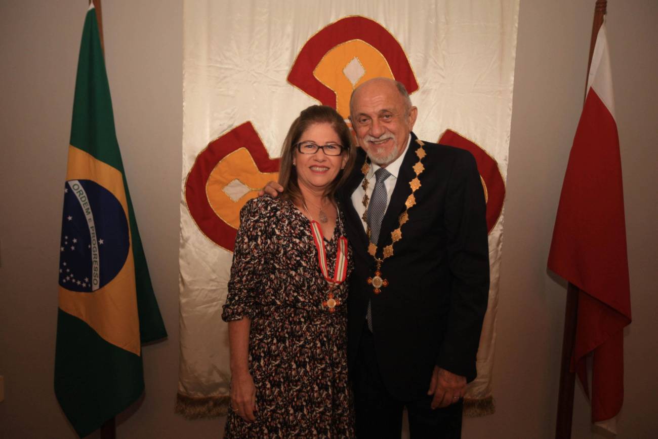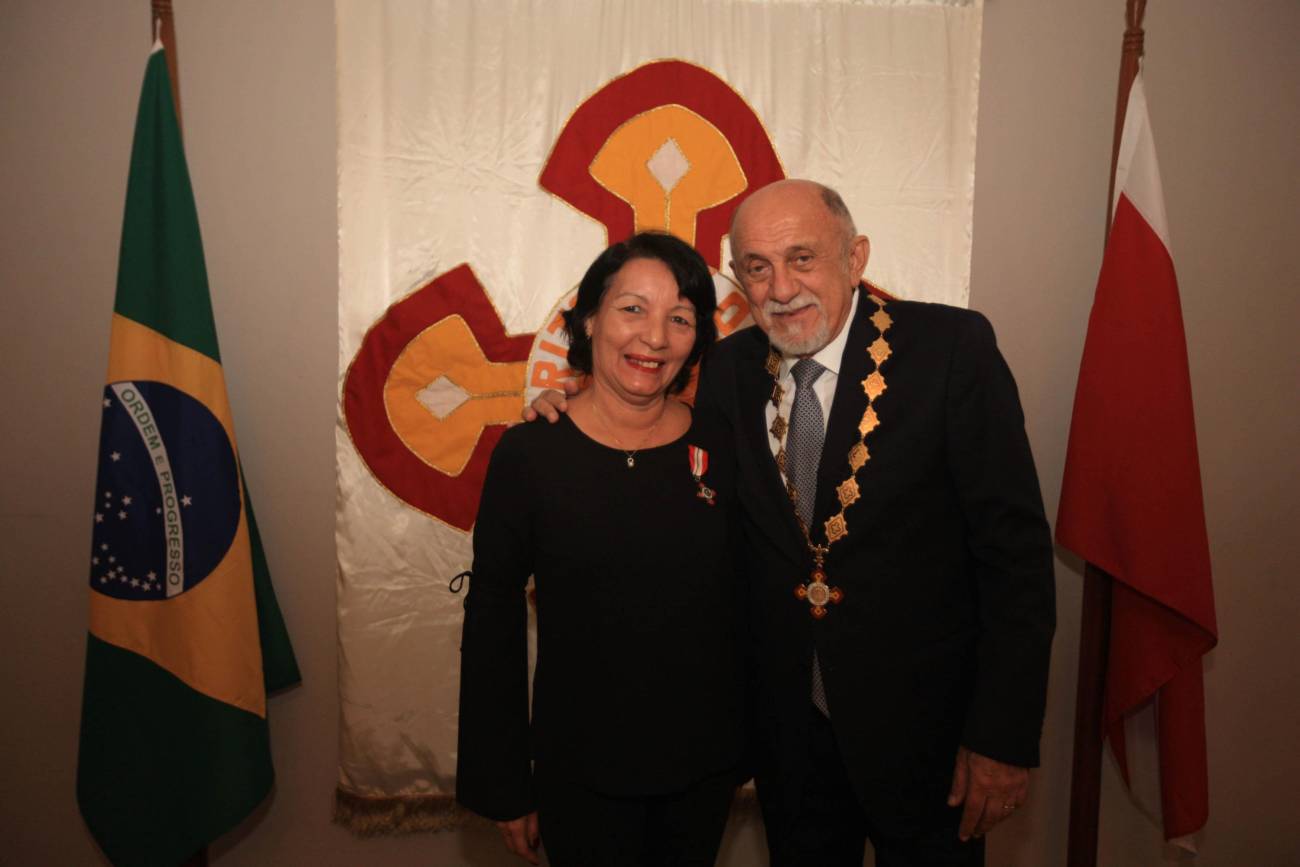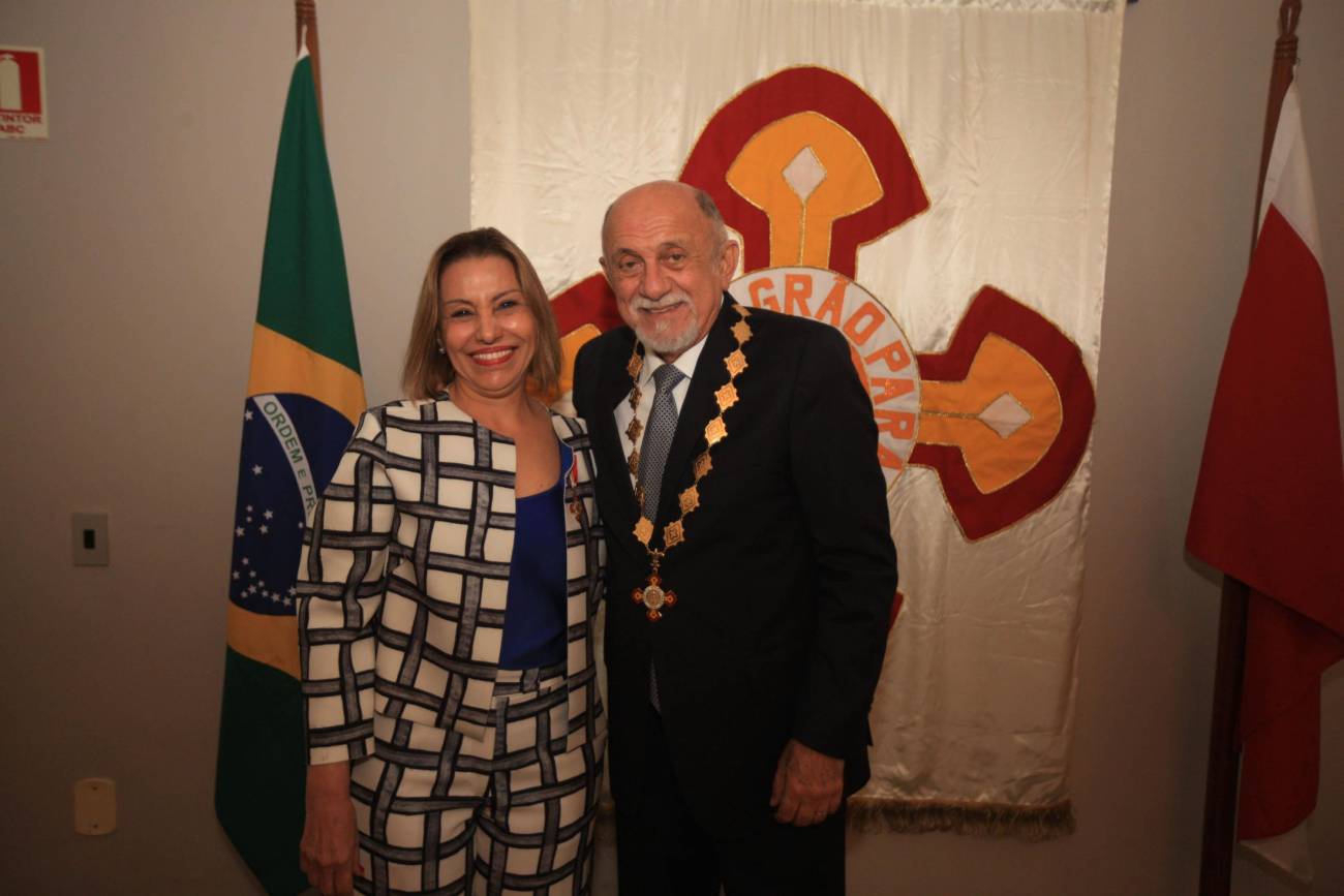 O Governo do Estado do Pará concedeu hoje 230 comendas do Mérito Grão-Pará, a mais alta do Estado, a autoridades e servidores que se destacaram nos últimos oito anos de serviços prestados à população. “O ciclo que encerramos hoje não encerra nossa missão de servir ao público, porque uma vez servidores públicos, trabalhando em benefício da população, nunca mais deixamos de sê-lo, pois essa missão fica gravada em nossos corações”, disse o governador Simão Jatene aos agraciados. O governador entregou, pessoalmente, uma a uma as condecorações. Das 230 medalhas, 14 foram no grau de Grande Oficial, 60 no grau de Comendador, 8 no grau de Oficial e 11 no grau de Cavaleiro aos servidores civis. Entre os militares, 4 receberam no grau de Comendador, 38 de Oficial e 109 no grau de Cavaleiro. Na foto, a presidente do Tribunal Regional Eleitoral, desembargadora Célia Regina Pinheiro e o governador Simão Jatene.