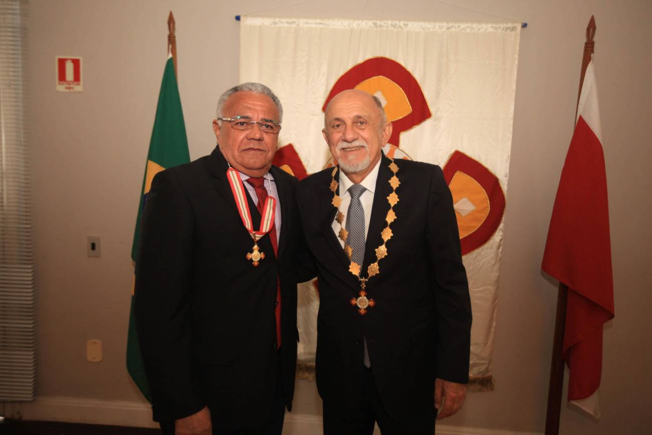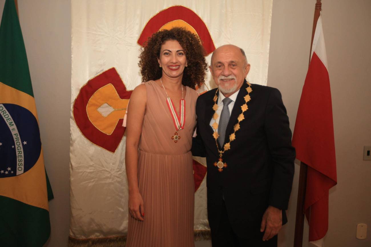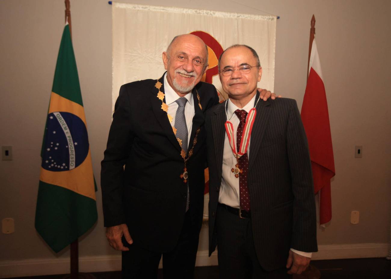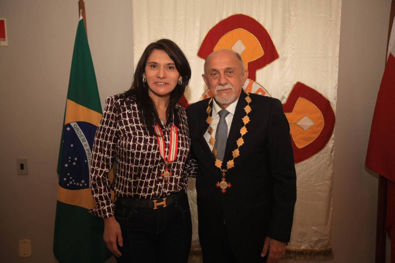 O Governo do Estado do Pará concedeu hoje 230 comendas do Mérito Grão-Pará, a mais alta do Estado, a autoridades e servidores que se destacaram nos últimos oito anos de serviços prestados à população. “O ciclo que encerramos hoje não encerra nossa missão de servir ao público, porque uma vez servidores públicos, trabalhando em benefício da população, nunca mais deixamos de sê-lo, pois essa missão fica gravada em nossos corações”, disse o governador Simão Jatene aos agraciados. O governador entregou, pessoalmente, uma a uma as condecorações. Das 230 medalhas, 14 foram no grau de Grande Oficial, 60 no grau de Comendador, 8 no grau de Oficial e 11 no grau de Cavaleiro aos servidores civis. Entre os militares, 4 receberam no grau de Comendador, 38 de Oficial e 109 no grau de Cavaleiro. Na foto, a presidente do Tribunal Regional Eleitoral, desembargadora Célia Regina Pinheiro e o governador Simão Jatene.