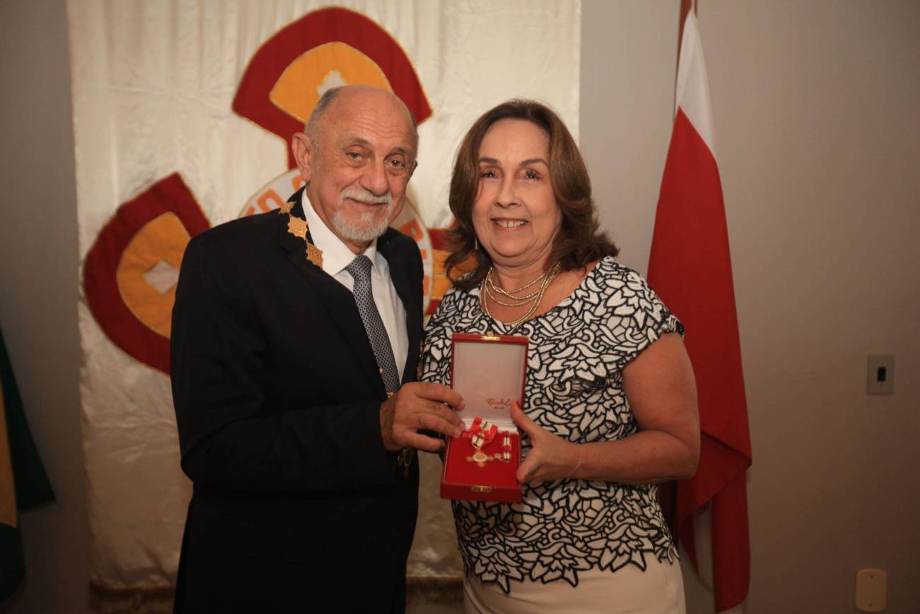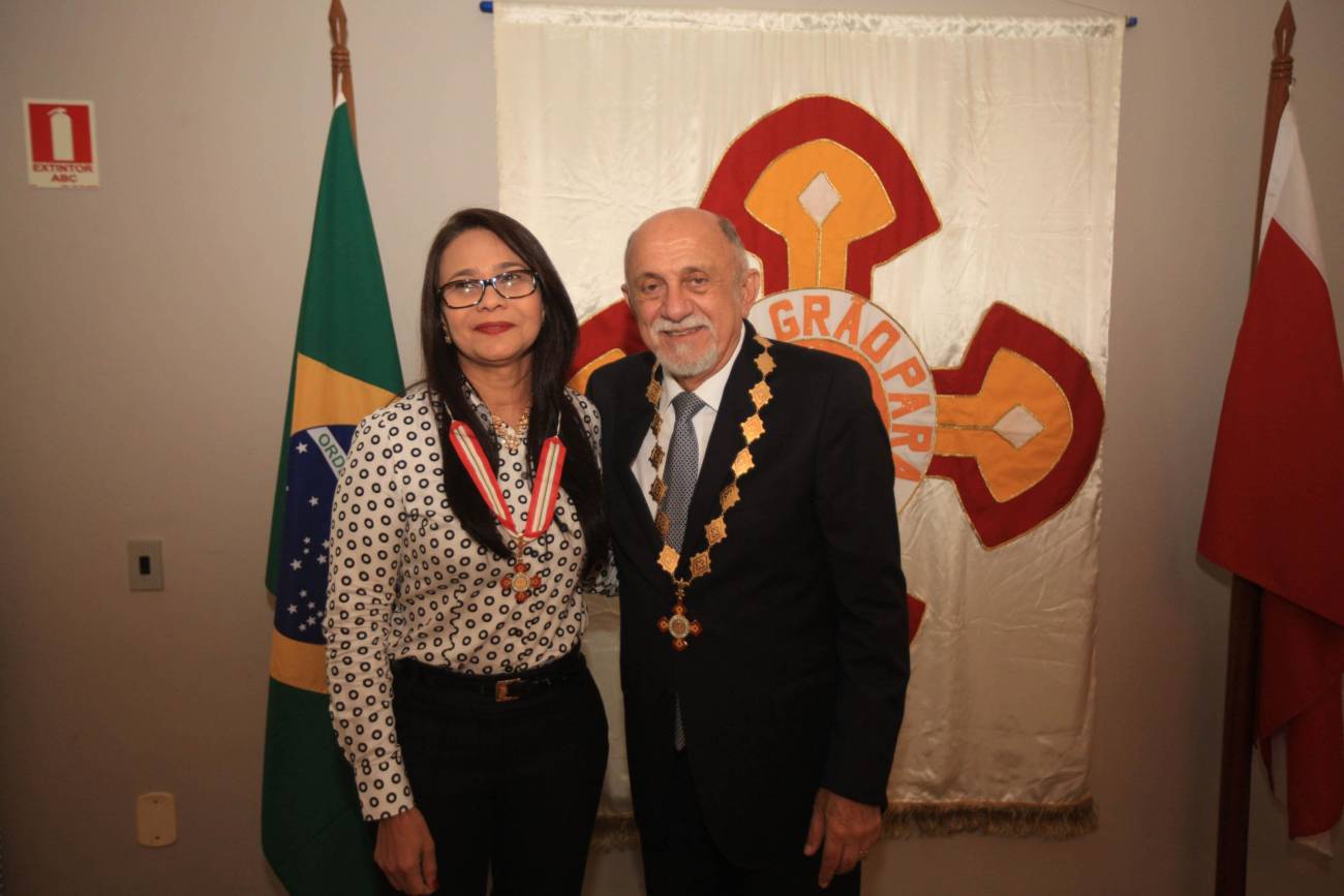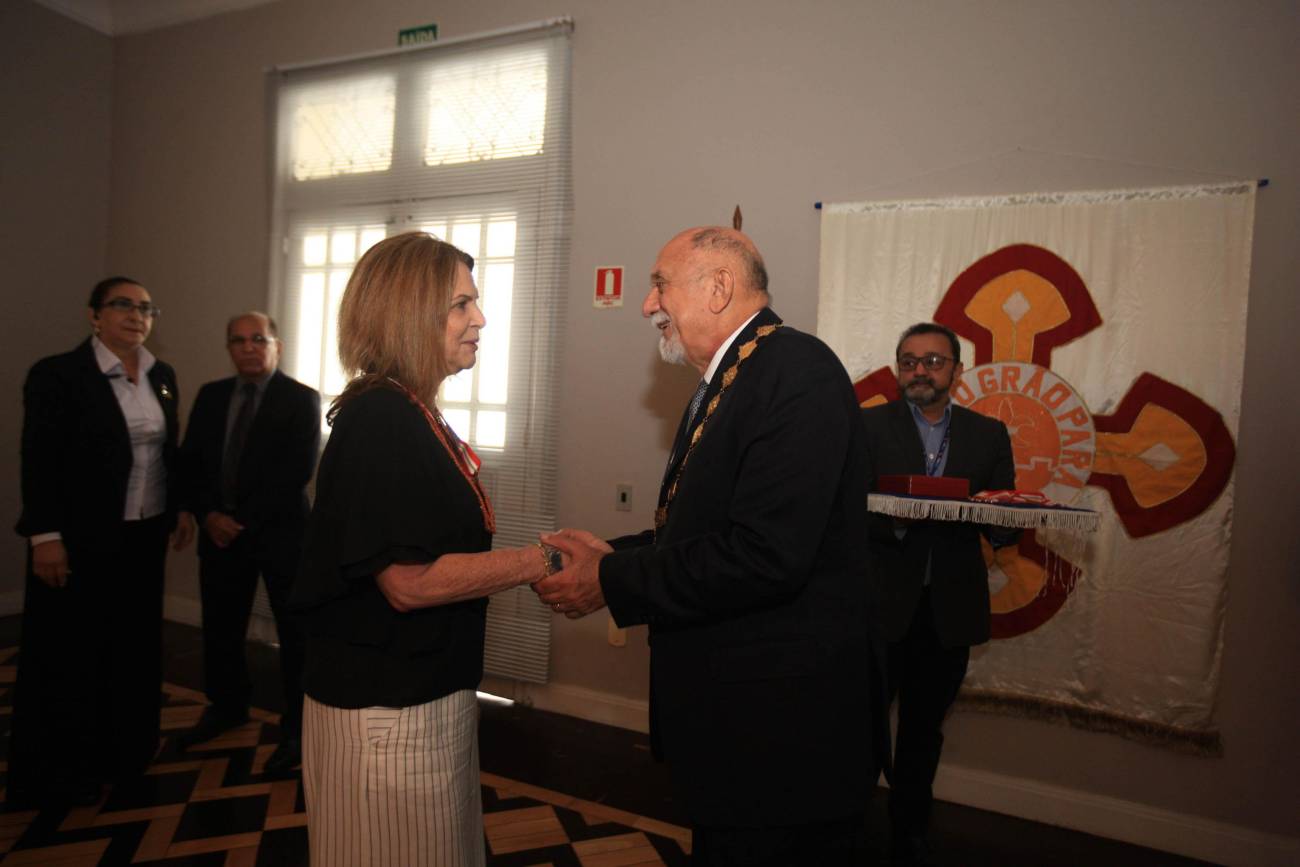 O Governo do Estado do Pará concedeu hoje 230 comendas do Mérito Grão-Pará, a mais alta do Estado, a autoridades e servidores que se destacaram nos últimos oito anos de serviços prestados à população. “O ciclo que encerramos hoje não encerra nossa missão de servir ao público, porque uma vez servidores públicos, trabalhando em benefício da população, nunca mais deixamos de sê-lo, pois essa missão fica gravada em nossos corações”, disse o governador Simão Jatene aos agraciados. O governador entregou, pessoalmente, uma a uma as condecorações. Das 230 medalhas, 14 foram no grau de Grande Oficial, 60 no grau de Comendador, 8 no grau de Oficial e 11 no grau de Cavaleiro aos servidores civis. Entre os militares, 4 receberam no grau de Comendador, 38 de Oficial e 109 no grau de Cavaleiro. Na foto, a presidente do Tribunal Regional Eleitoral, desembargadora Célia Regina Pinheiro.