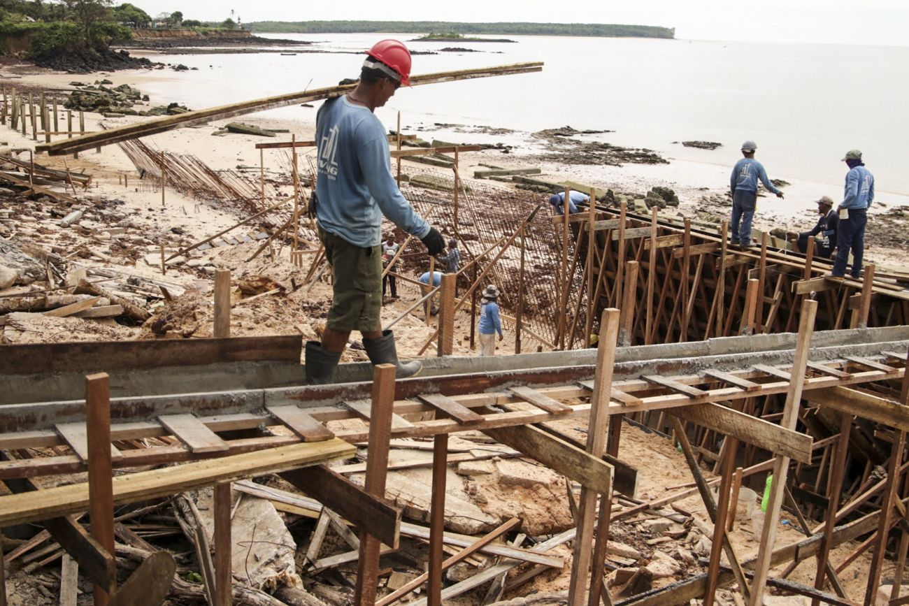 Obra do mudo de contenção da Praia Grand,Salvaterra.
