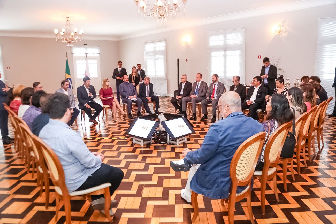 Uma equipe técnica chefiada pela arquiteta carioca Bel Lobo apresentou, na manhã desta terça-feira (13), no Palácio dos Despachos, a primeira versão do projeto arquitetônico Usinas da Paz, construções que serão colocadas em sete territórios da Grande Belém onde o Estado está implantando o Projeto Territórios pela Paz (TerPaz). Para a produção das obras, que terão investimentos da Vale, será assinado um Termo de Cooperação Técnica entre o governo do Pará e a mineradora. <div class='credito_fotos'>Foto: Alex Ribeiro / Ag. Pará   |   <a href='/midias/2019/originais/5293_20190813105132_img_3517.jpg' download><i class='fa-solid fa-download'></i> Download</a></div>