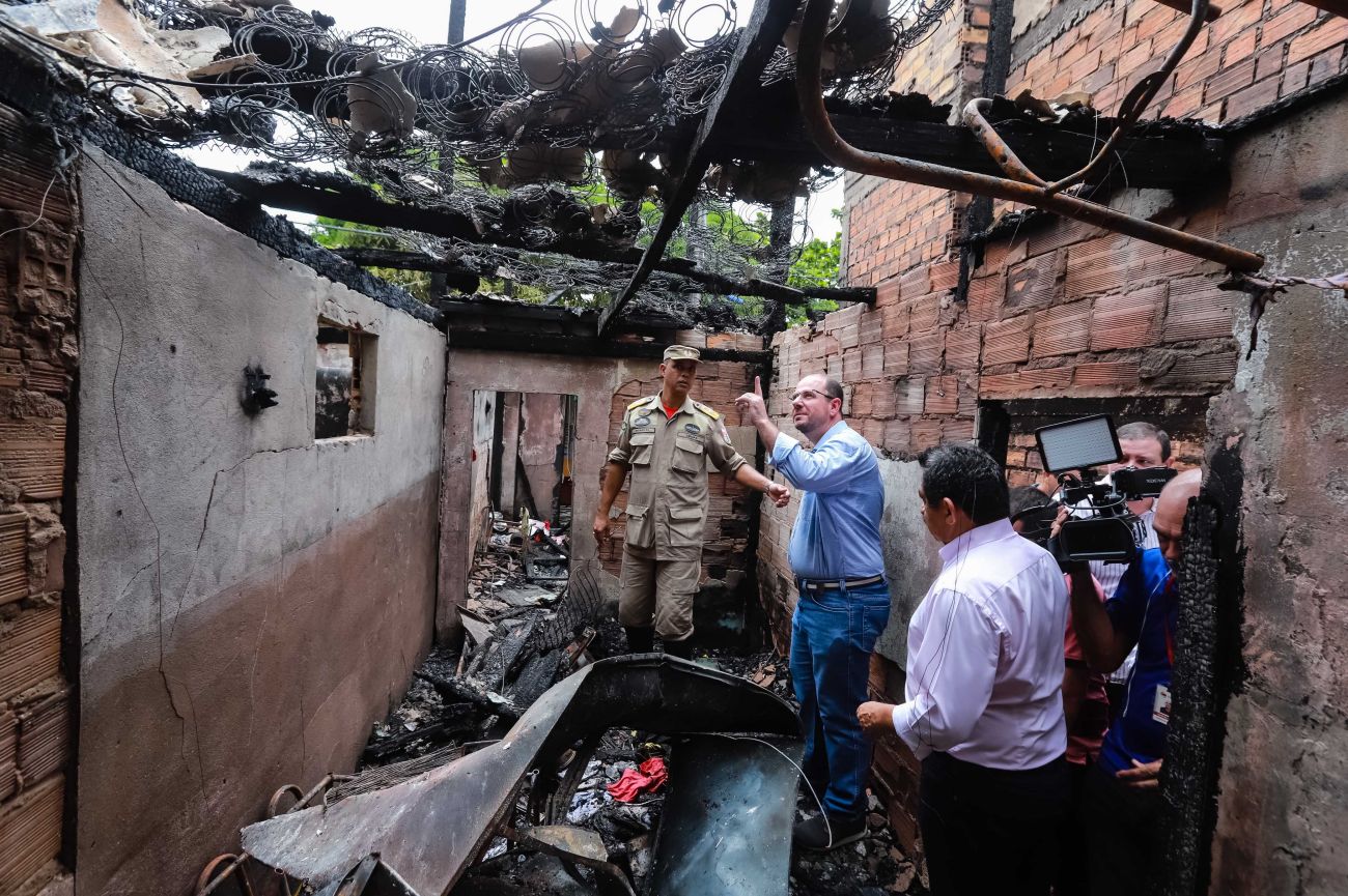 O vice-governador do Estado, Lúcio Vale, o presidente da Companhia de Habitação do Estado do Pará (Cohab), José Scaff Filho, e as equipes de engenharia e social do órgão estiveram, na manhã desta sexta-feira (13), em dois endereços onde ocorreram incêndios de grandes proporções, atingindo mais de 20 casas no bairro da Pedreira, em Belém. <div class='credito_fotos'>Foto: Marco Santos / Ag. Pará   |   <a href='/midias/2019/originais/5439_incendionapedreiraproximocanaldogalo_marcosantos_0005.jpg' download><i class='fa-solid fa-download'></i> Download</a></div>