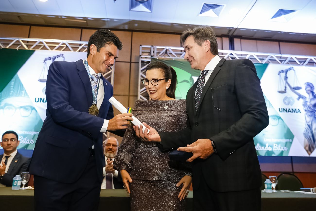 O governador Helder Barbalho foi agraciado com a comenda "Tobias Barreto" na noite desta quinta-feira (26), durante a abertura do I Congresso Brasileiro de Direito e Constituição, que ocorre no Hangar - Convenções e Feiras da Amazônia até sábado o próximo sábado (28). A honraria concedida pelo Instituto Brasileiro de Estudos do Direito (Ibed) reconhece o trabalho, o sólido conhecimento e os serviços prestados ao Direito e à Justiça.