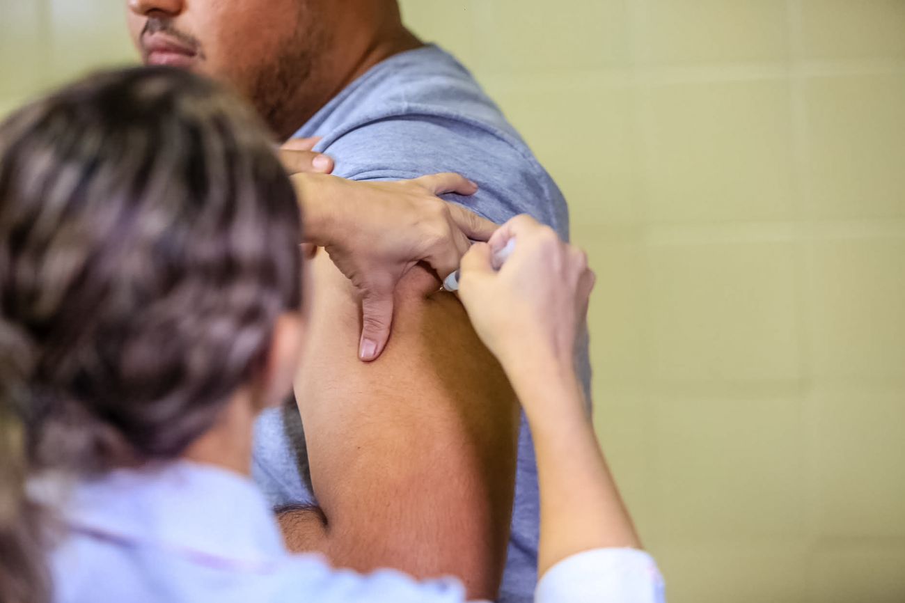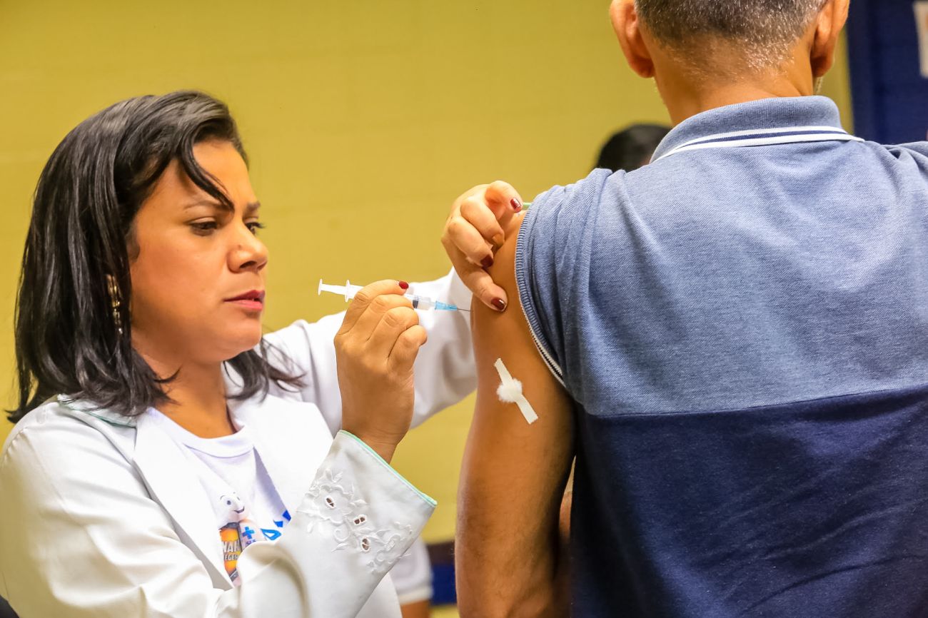 O governador do Pará, Helder Barbalho, e o secretário estadual de Saúde do Pará, Alberto Beltrame, lançaram oficialmente, nesta sexta-feira (27), em Belém, a Campanha Vacinação contra o Sarampo, que foi antecipada especialmente no Estado para resgatar a cobertura vacinal contra a doença e assim aumentar a proteção da população paraense. <div class='credito_fotos'>Foto: Marco Santos / Ag. Pará   |   <a href='/midias/2019/originais/5502_antecipacaodevacinacontraosarampo-fotomarcosantos-21.jpg' download><i class='fa-solid fa-download'></i> Download</a></div>