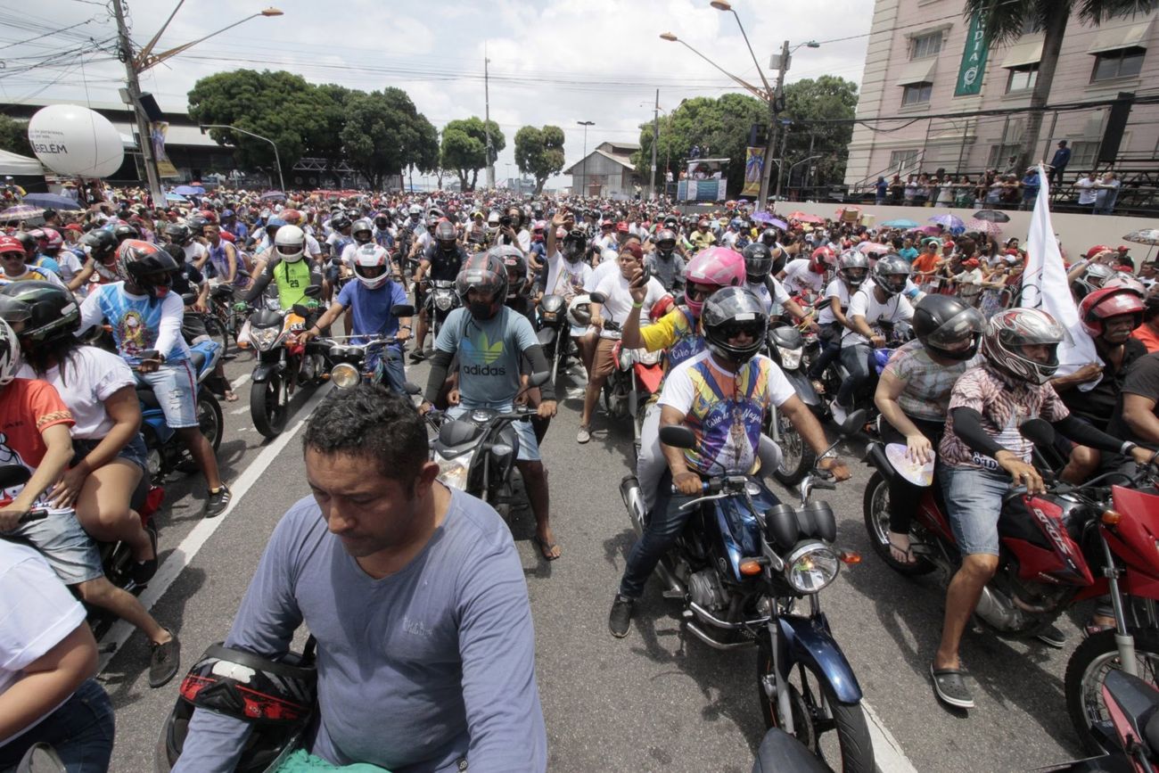 A Imagem Peregrina de Nossa Senhora de Nazaré foi recebida com honras de chefe de Estado pela Polícia Militar após a Romaria Fluvial na manhã deste sábado (12), em Belém. Minutos depois da chegada da procissão na Praça Pedro Teixeira, a imagem foi colocada no carro da Polícia Rodoviária Federal (PRF) para o início da Moto Romaria, que seguiu até o colégio Gentil Bittencourt em 2,5 quilômetros de percurso.