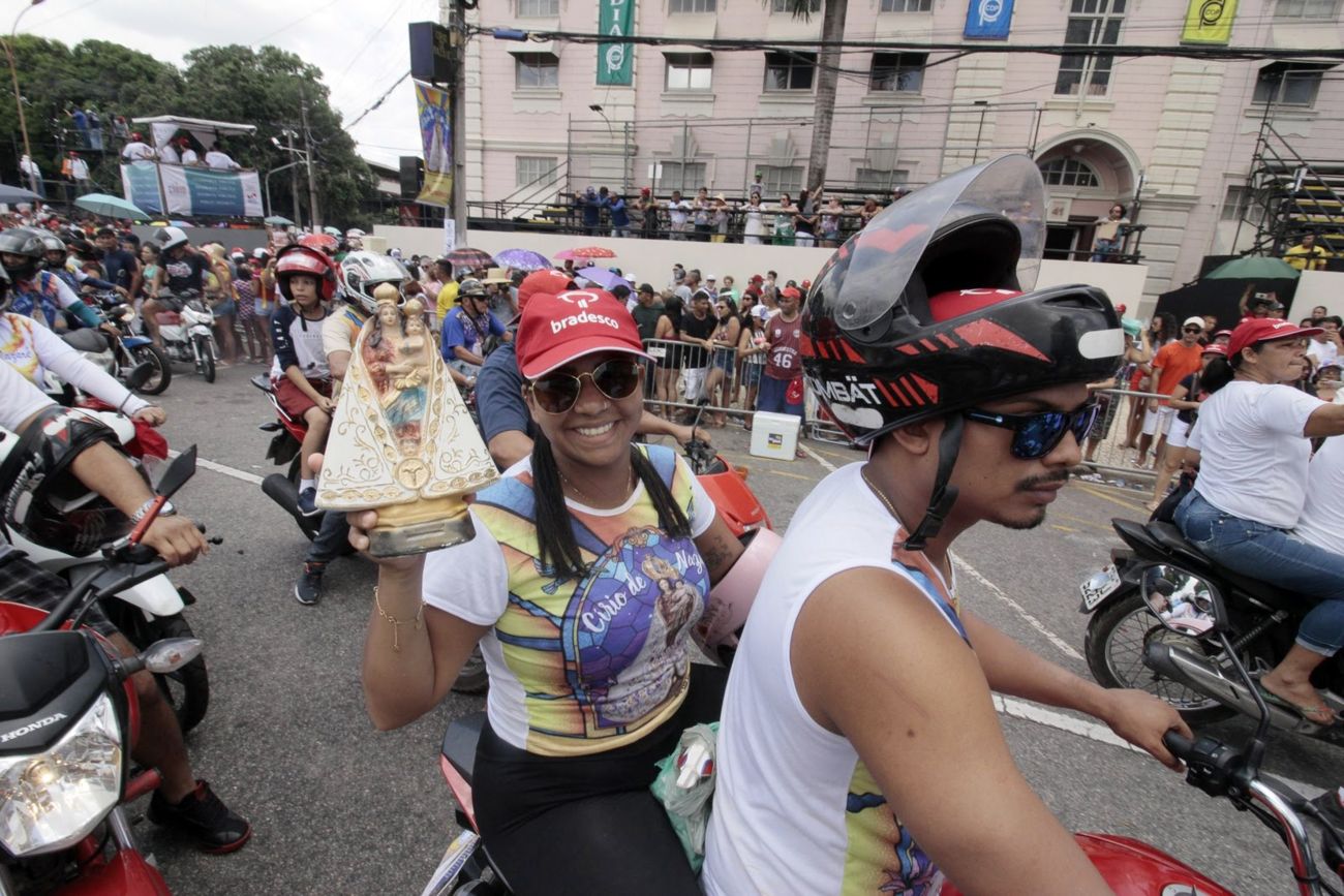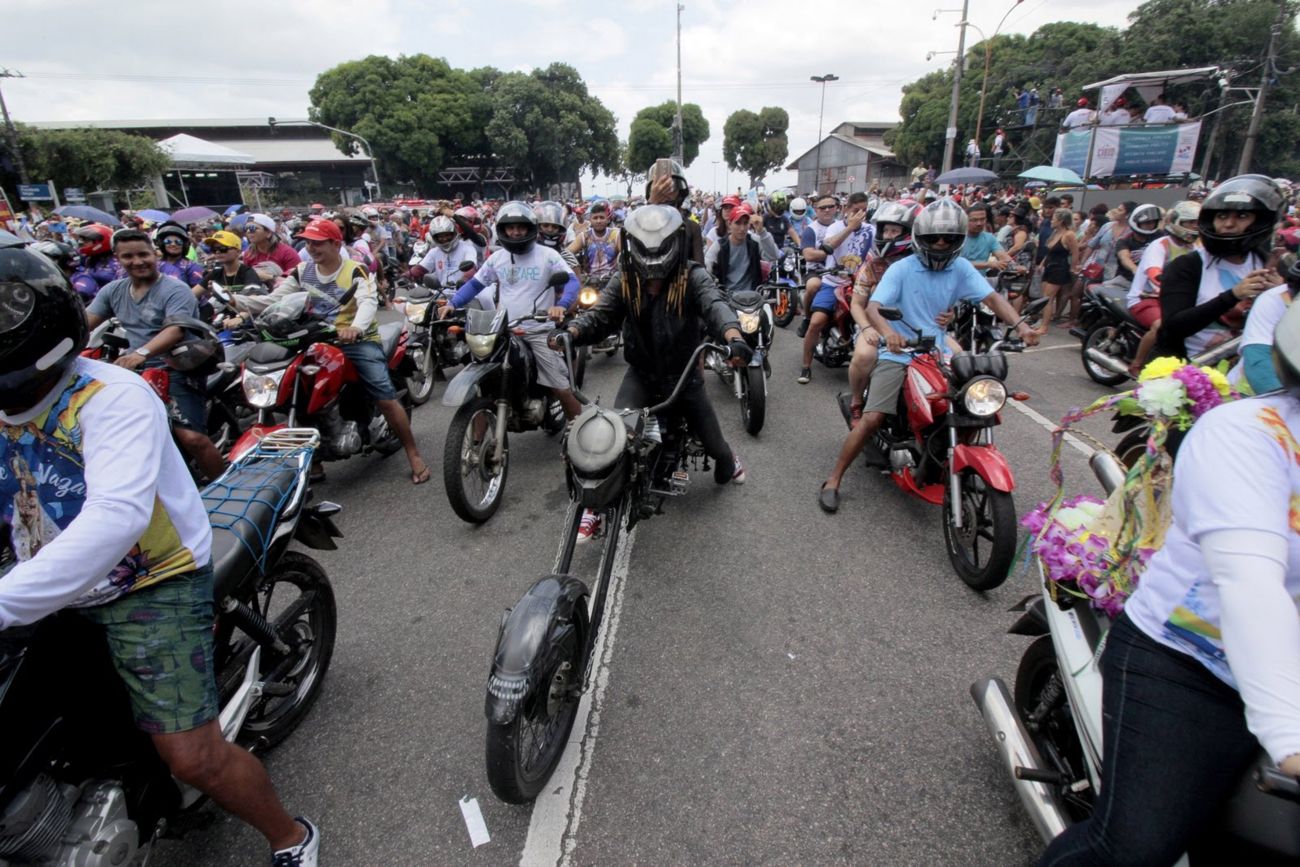 A Imagem Peregrina de Nossa Senhora de Nazaré foi recebida com honras de chefe de Estado pela Polícia Militar após a Romaria Fluvial na manhã deste sábado (12), em Belém. Minutos depois da chegada da procissão na Praça Pedro Teixeira, a imagem foi colocada no carro da Polícia Rodoviária Federal (PRF) para o início da Moto Romaria, que seguiu até o colégio Gentil Bittencourt em 2,5 quilômetros de percurso. <div class='credito_fotos'>Foto: Ricardo Amanajás / Ag. Pará   |   <a href='/midias/2019/originais/5568_bd5d0fd0-11c0-9a88-4870-2372d77d032a.jpg' download><i class='fa-solid fa-download'></i> Download</a></div>
