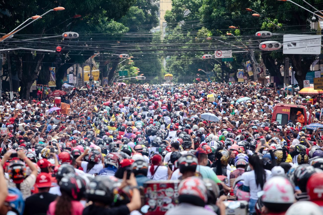 A Imagem Peregrina de Nossa Senhora de Nazaré foi recebida com honras de chefe de Estado pela Polícia Militar após a Romaria Fluvial na manhã deste sábado (12), em Belém. Minutos depois da chegada da procissão na Praça Pedro Teixeira, a imagem foi colocada no carro da Polícia Rodoviária Federal (PRF) para o início da Moto Romaria, que seguiu até o colégio Gentil Bittencourt em 2,5 quilômetros de percurso. <div class='credito_fotos'>Foto: Marco Nascimento / AG. Pará   |   <a href='/midias/2019/originais/5568_d90fba38-5434-e68a-4492-68beae275d1e.jpg' download><i class='fa-solid fa-download'></i> Download</a></div>