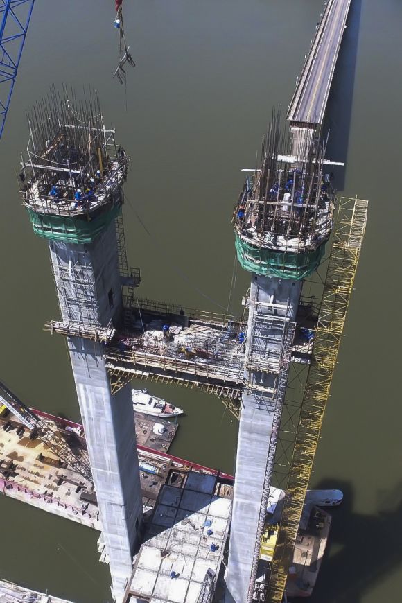 Serão instalados 40 cabos estais, que serão implantados em pares, de forma simultânea. Os cabos estais são os responsáveis pela sustentação e estabilidade da pista da ponte.