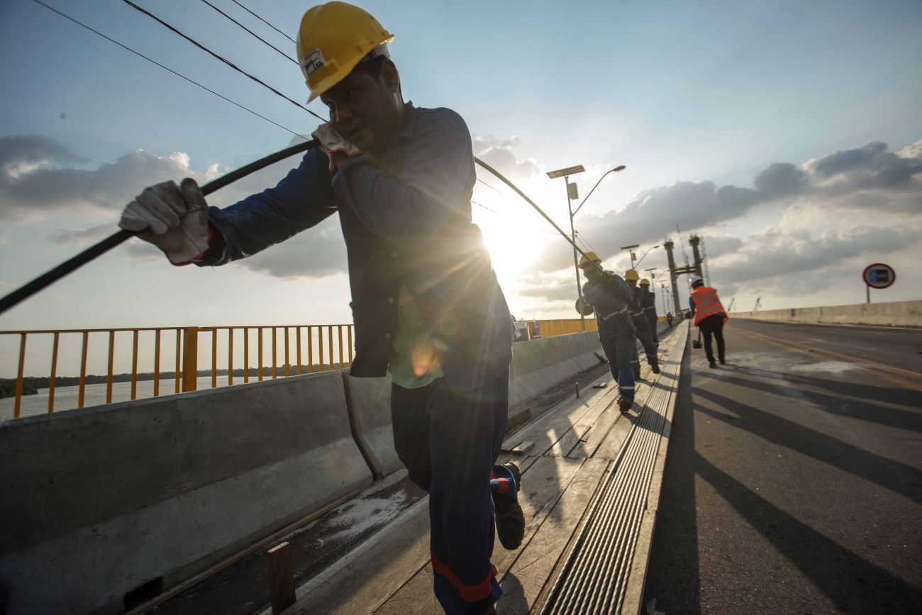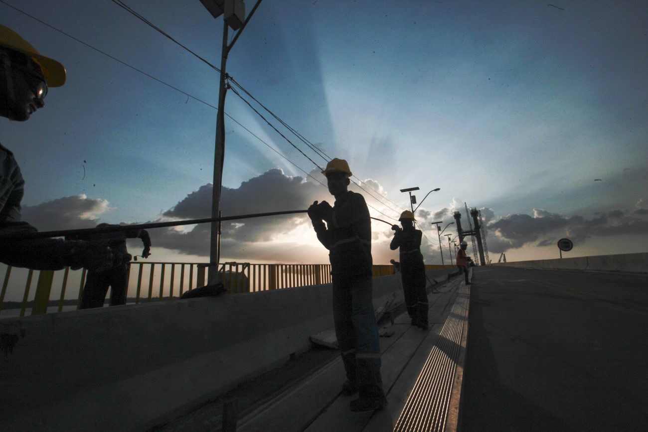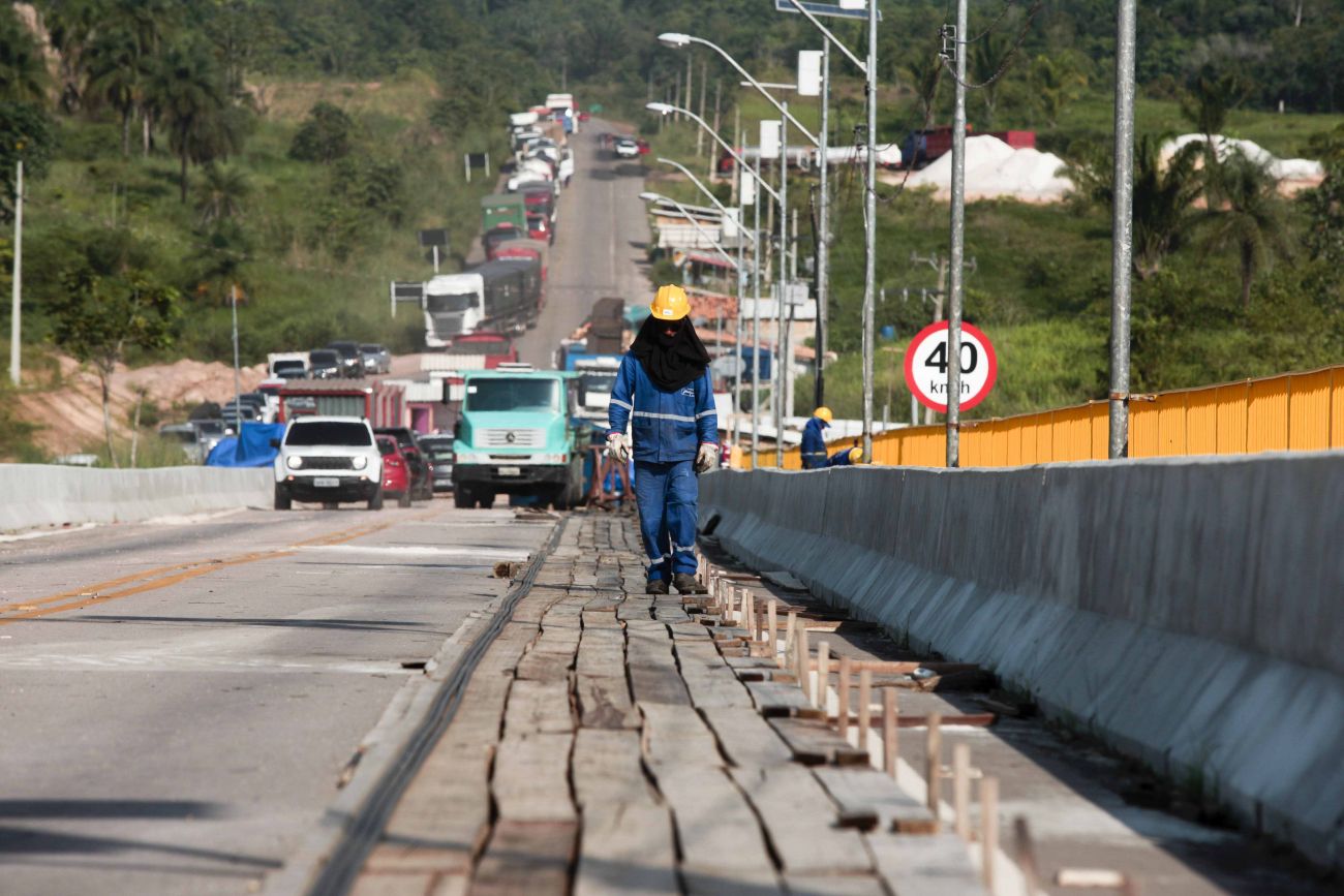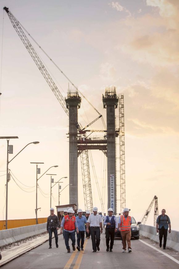 O governador Helder Barbalho visitou nesta sexta-feira (29) as obras de reabilitação dos 268 metros do vão central da ponte Rio Moju, no Complexo da Alça Viária (Região Metropolitana de Belém), e recebeu a informação da construtora responsável pelo serviço que a ligação da ponte será feita no próximo dia 23 de dezembro, antevéspera do Natal.