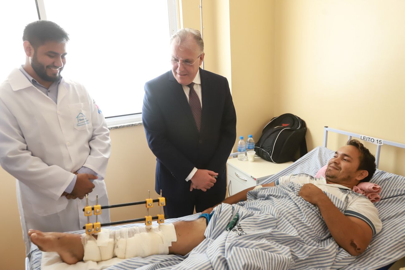 O Hospital Regional Público dos Caetés (HRPC) em Capanema, que nesta quarta-feira (11), completa um mês de funcionamento, já contabiliza 74 internações e se consolida com referência em Traumato Ortopedia e Cirurgia Geral para a população de 16 municípios do Nordeste do Pará, sendo que 50% deles não dispõem de nenhuma unidade hospitalar. <div class='credito_fotos'>Foto: Marco Santos / Ag. Pará   |   <a href='/midias/2019/originais/5757_aaf8b443-ca25-a565-367c-e418a1a70af4.jpg' download><i class='fa-solid fa-download'></i> Download</a></div>