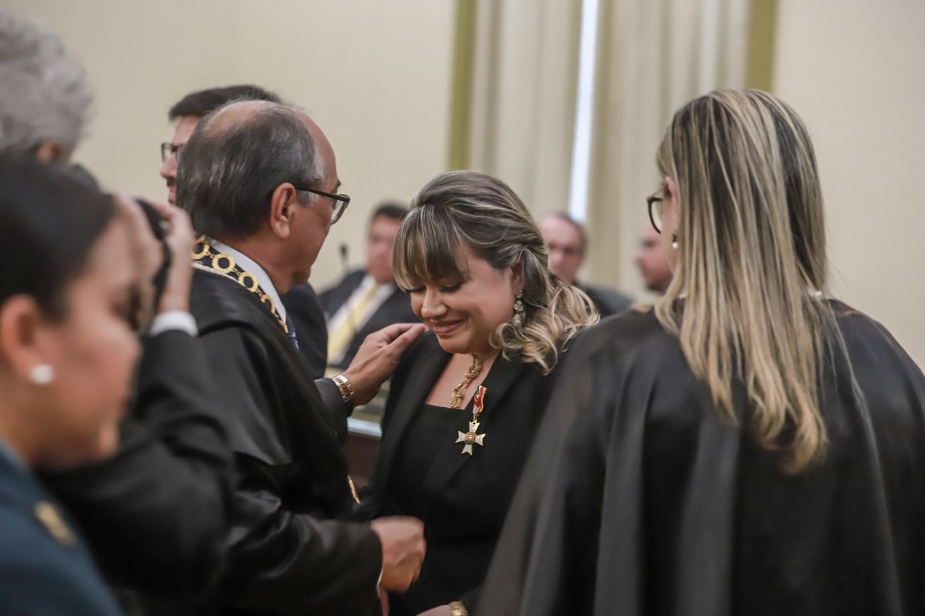 Nesta quarta-feira (11), no salão nobre do Tribunal de Justiça do Estado do Pará, sob a presidência do desembargador Leonardo Noronha Tavares, foi realizada a cerimônia de outorga da Ordem do Mérito Judiciário Paraense. A honraria, em cinco graus, reconhece personalidades que prestam serviços à sociedade buscando o desenvolvimento do Estado do Pará e a construção de uma sociedade justa. Na ocasião, as honrarias foram entregues a autoridades, servidores, magistrados e militares, medalhas nos graus Grande Oficial, Comendador, Oficial e Cavaleiro.