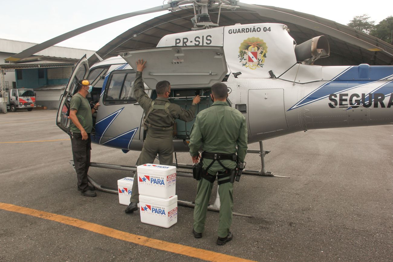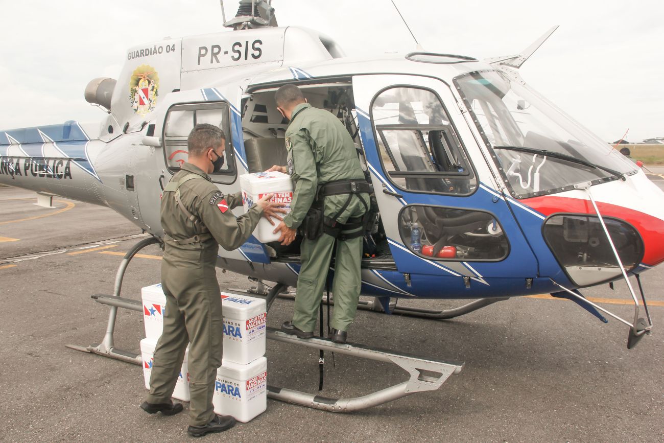 Segup e Sespa distribuem 55.754 novas doses da CoronaVac por meio do Grupamento Aéreo