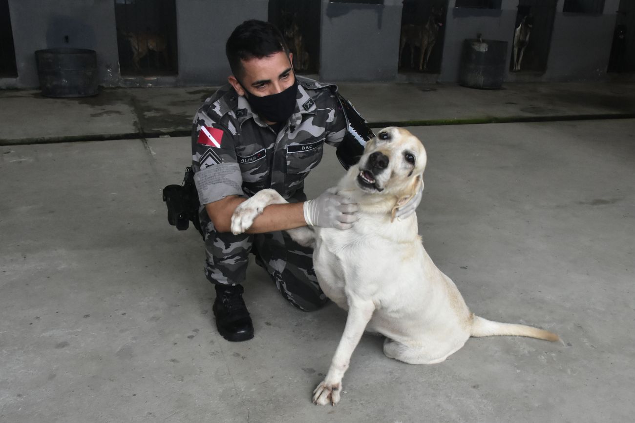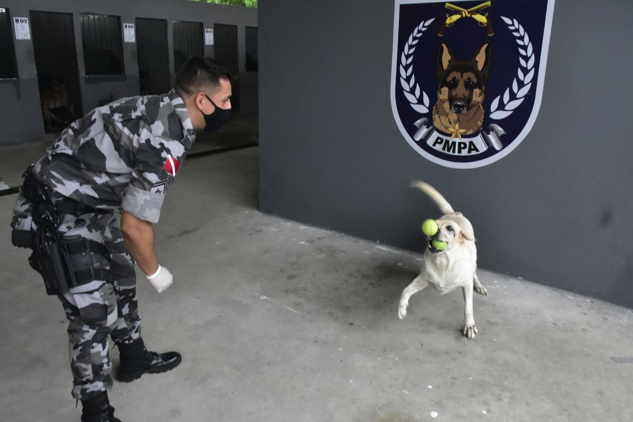Belém, Pará, Brasil. DIA DO ANIMAL, BATALHÃO COM CÃES - 12/03/2021