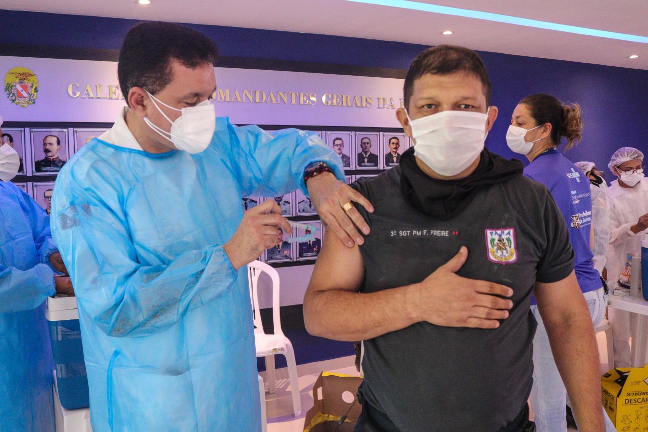 Na capital, Polícia Militar dá início à imunização da tropa contra a covid-19