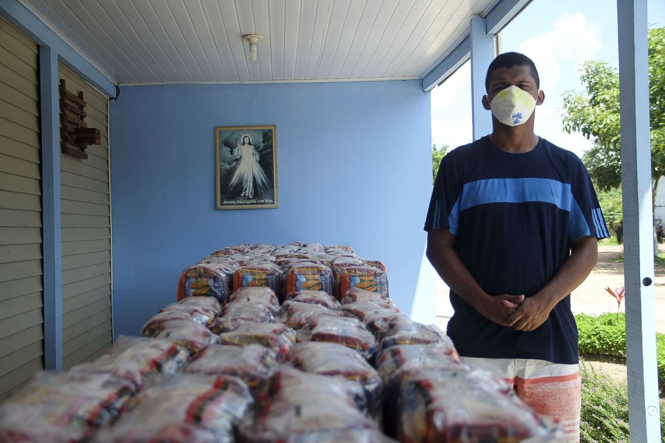Doação de cestas básicas em diversos abrigos da RMB, e a ação provocada na realidade de quem enfrenta situações de vunerabilidade. Missão Belém Benevides. <div class='credito_fotos'>Foto: Pedro Guerreiro / Ag. Pará   |   <a href='/midias/2021/originais/7520_5fab614e-269e-846d-99bc-1286ac36bae6.jpg' download><i class='fa-solid fa-download'></i> Download</a></div>