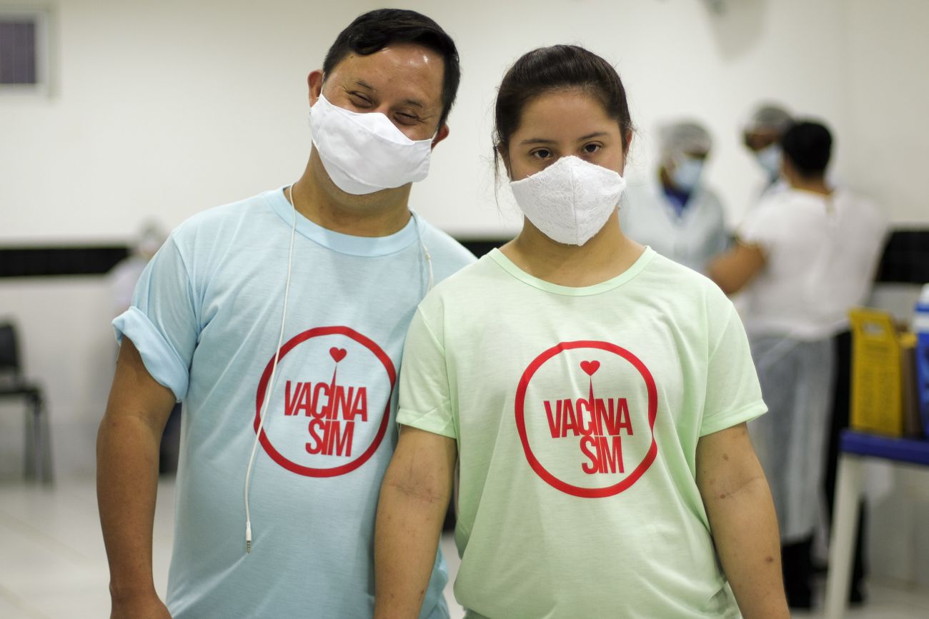 Renais cronicos, pessoas com sindrome de down e idosos acima de 60 anos sao vacinados na APAE e em alguns pontos de Belém. Ana Maria Gurjão, 40 anos, foi se vacinar acompanhada da irmã.