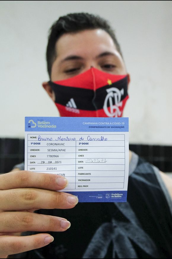 Renais crônicos, pessoas com sindrome de down e idosos acima de 60 anos sao vacinados na APAE e em alguns pontos de Belém. Ana Maria Gurjão, 40 anos, foi se vacinar acompanhada da irmã.
