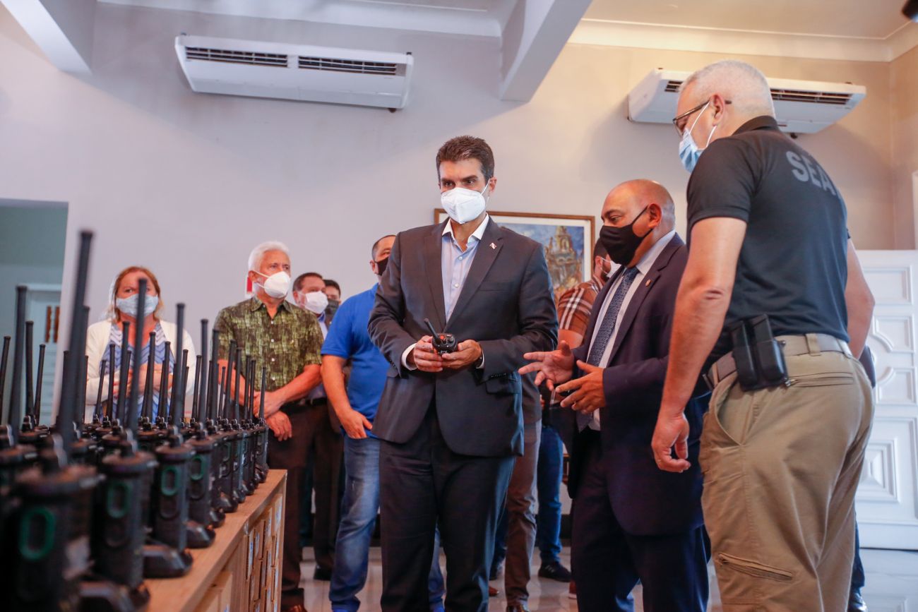 O governador Helder Barbalho entregou, na tarde desta terça-feira (11), três novos ônibus adaptados e 500 rádios transceptores portáteis digitais com criptografia para Secretaria de Estado de Administração Penitenciária (Seap). A medida tem como objetivo dar mais segurança aos servidores do órgão. A entrega foi realizada no Palácio dos Despachos, em Belém.