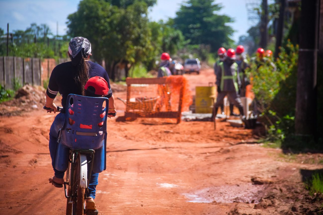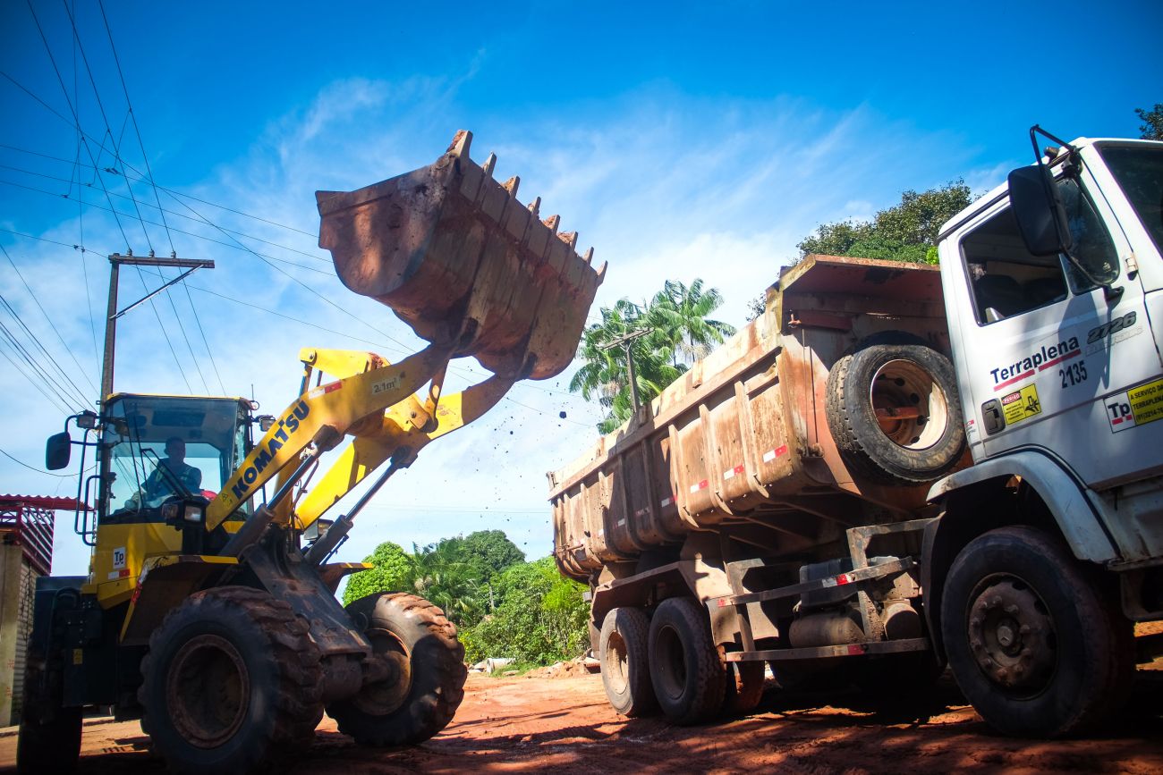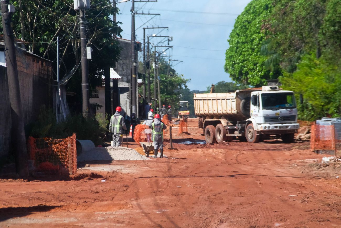 Rua Jardim Providência, no bairro de Ãguas Lindas, passa por obras de criação de galeria de saneamento básico, macrodrenagem e asfaltamento.