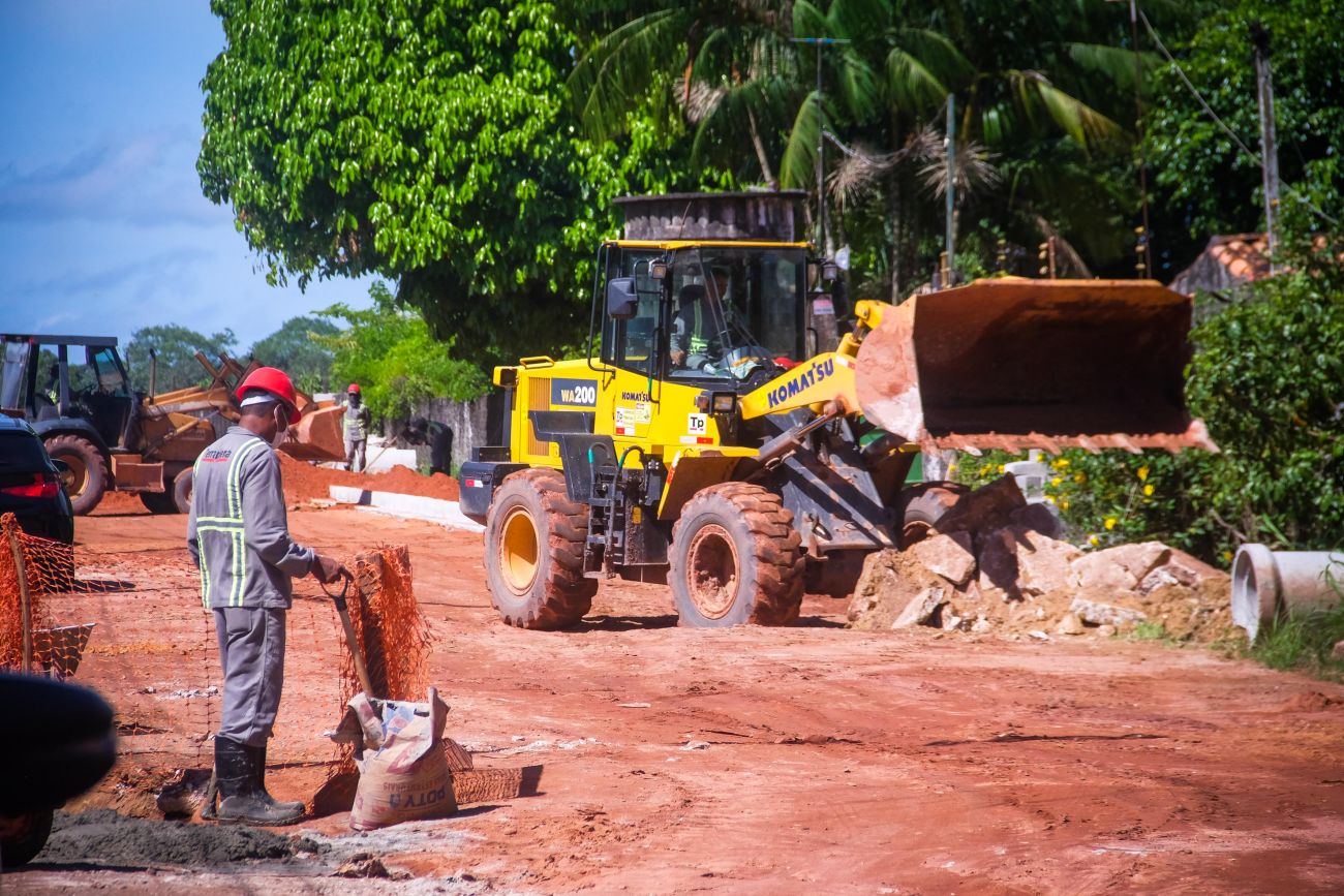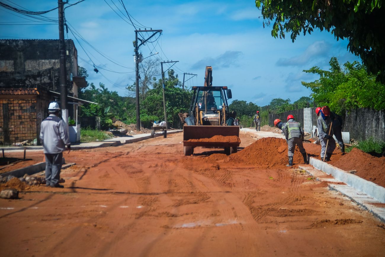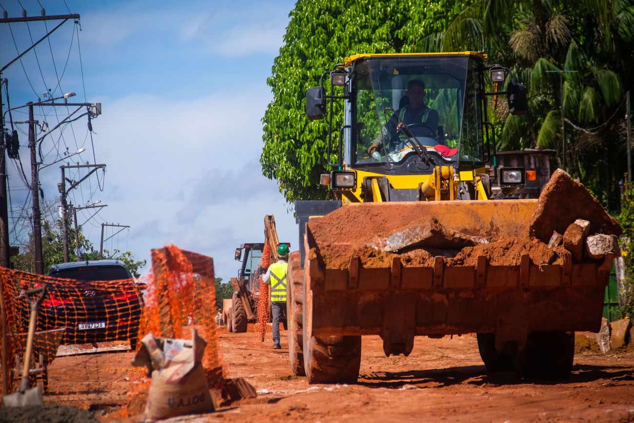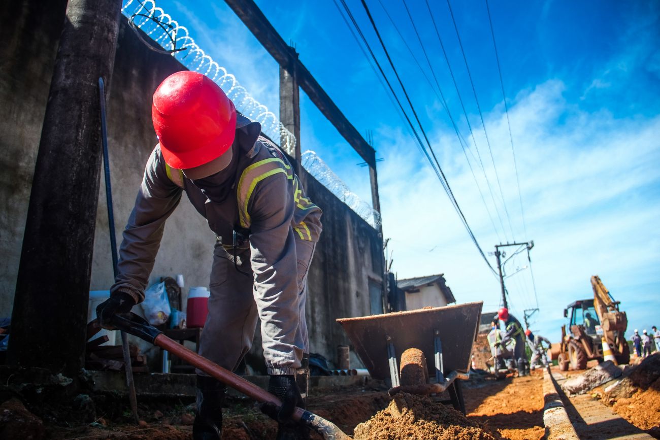 Rua Jardim Providência, no bairro de Ãguas Lindas, passa por obras de criação de galeria de saneamento básico, macrodrenagem e asfaltamento.