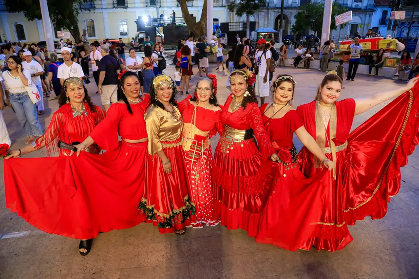 In the streets of the Cidade Velha neighborhood, where the procession passed, artists danced and sang, using different artistic languages to promote the reflection proposed by this year's theme — mixing religious symbols with other local elements. This diversity of expressions seeks to exalt one of the most significant periods of the state: the feast of Our Lady of Nazaré. The concentration began at Praça do Carmo at 5:30 PM, with departure at 7 PM, on a route that passed by historical points such as the Cathedral of Sé and the Lauro Sodré Palace, home of the Museum of the State of Pará (MEP).