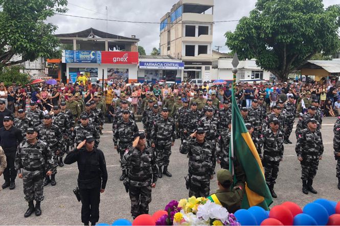 São 49 novos agentes de segurança pública, que, agora, se juntam aos 22 policiais militares que integram atualmente o Grupamento Tático Operacional (GTO), aumentando o efetivo e a segurança na região do Marajó.