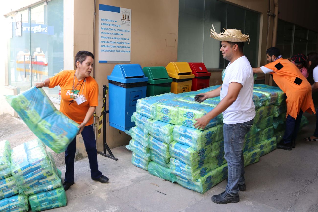 A Fundação Santa Casa de Misericórdia do Pará recebeu, nesta sexta-feira (24), uma doação de 218 fardos de fraldas de todos os tamanhos. A doação foi feita por meio do Grupo de Humanização da Fundação, que foi contatado pela empresa Suzano, que realiza esse trabalho voluntário em Belém desde outubro do ano passado.