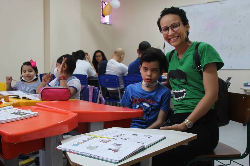 "Eu tinha essa preocupação dele perder mais um ano letivo e fui conheci a classe hospitalar. É um projeto brilhante. Ele está amando, se esforça para acordar cedo e rever os amigos", conta a mãe. "Falo para ele que não será uma limitação na fala ou a doença que vai impedi-lo de alguma coisa no futuro. Ele é uma criança e a escola faz parte da vida dele", complementa Luanny.