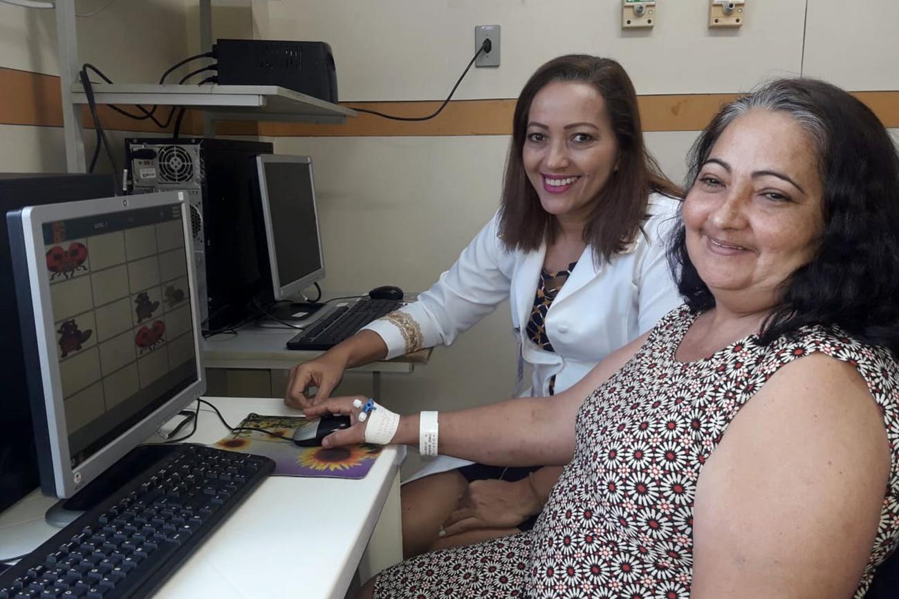 Maria, de 70 anos, além do acompanhamento multidisciplinar, passa por sessões de gameterapia.Antes visto como parceiro do sedentarismo, o videogame deixou de ser opção exclusiva para quem deseja entretenimento. Hoje, é um recurso terapêutico utilizado por hospitais na reabilitação de incapacidades físicas e cognitivas. Em Belém, a equipe de Terapia Ocupacional do Hospital Ophir Loyola usa a gameterapia na recuperação de pacientes em tratamento de doenças cerebrais no Instituto de Neurologia. A utilização de games de memória e softwares com sensores incentiva a atividade cerebral e auxilia na recuperação de movimentos.