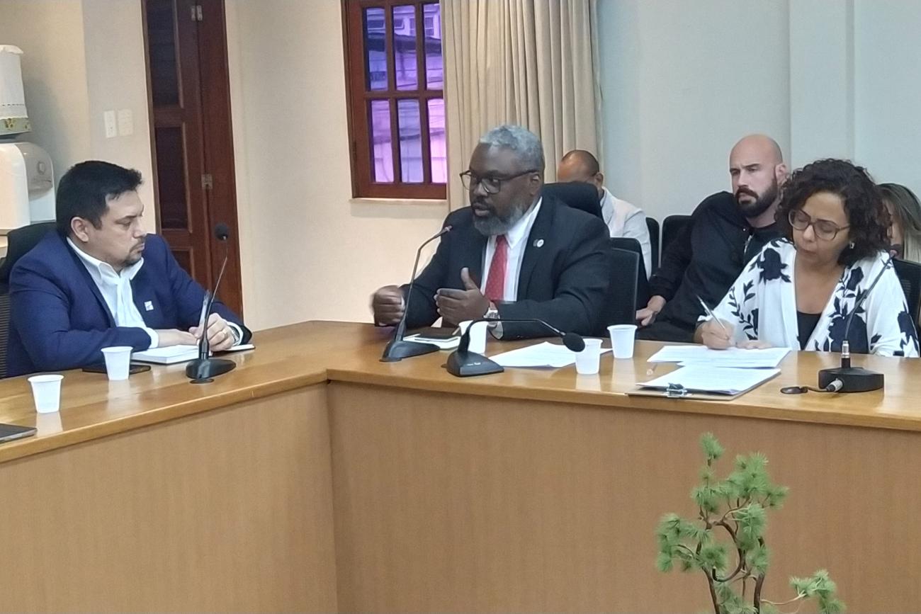 Peritos vinculados ao Mecanismo Nacional de Prevenção e Combate à Tortura (MNPCT) se reuniram na tarde desta quinta-feira (19) com vários gestores estaduais, para tratar sobre o sistema prisional no Pará, na sede da Secretaria de Estado de Segurança Pública e Defesa Social (Segup). O encontro, que resultou da análise preliminar dos peritos em unidades prisionais, teve a participação do secretário Extraordinário para Assuntos Penitenciários, Jarbas Vasconcelos; da ouvidora do Sistema Estadual de Segurança Pública e Defesa Social, Maria Cristina Carvalho; do coordenador institucional da Força-Tarefa de Intervenção Penitenciária, Maycon Rottava; da ouvidora da FTIP e de representantes da Polícia Civil, sob a coordenação do titular da Segup, Ualame Machado.