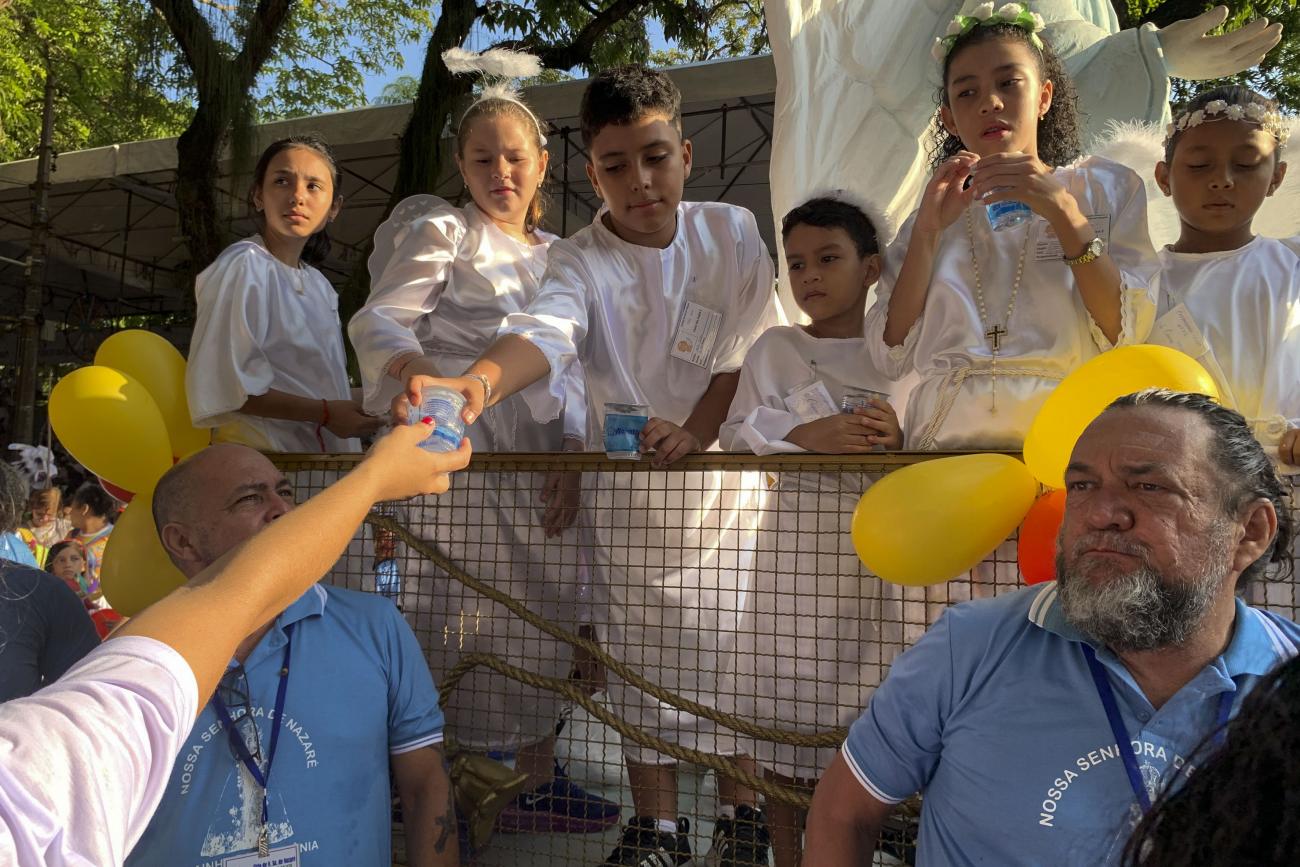 A doação também ajudou a saciar a sede das crianças no Carro dos Anjos“Esse ano é um Círio diferente, um ano de renovação. Estamos nas ruas entregando a nossa água, produzida pela Companhia. Temos mais de 50 funcionários fazendo esse trabalho voluntário para os romeiros de Nossa Senhora de Nazaré”, declarou a diretora de Gestão de Pessoas e Logística da Cosanpa, Fernanda Paes.