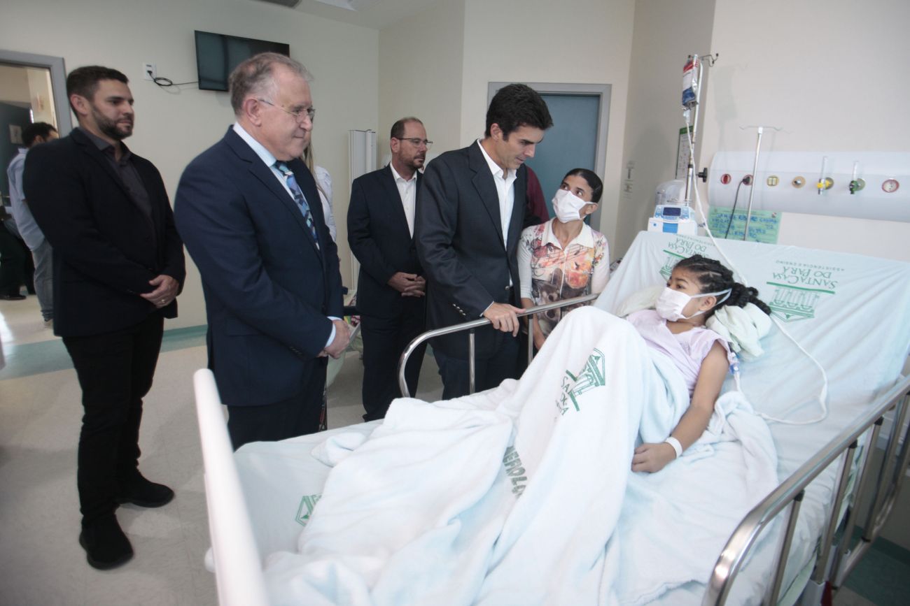 Helder Barbalho, Lúcio Vale, Alberto Beltrame e Bruno Carmona visitaram a primeira paciente pediátrica a passar por transplante no hospitalDurante a visita, Helder Barbalho cumprimentou a primeira paciente pediátrica a passar por um transplante no hospital. A criança, de 11 anos, recebeu um rim da mãe no último dia 19 de novembro, e ambas passam bem.