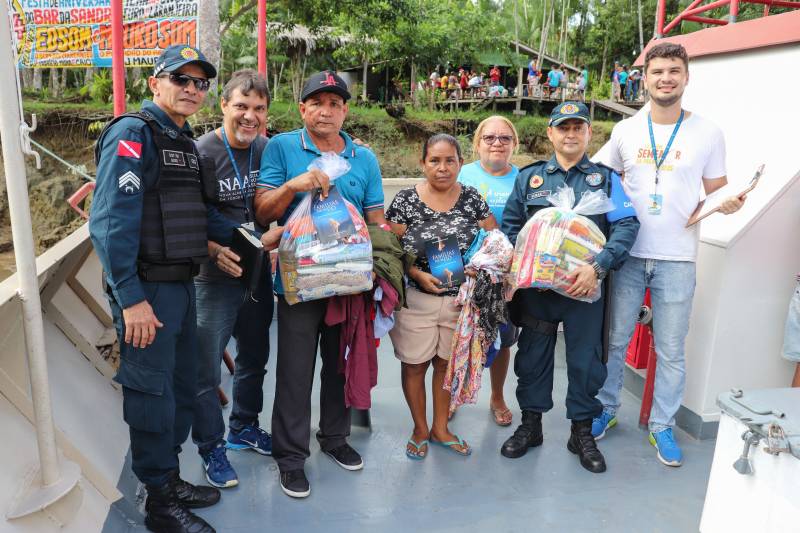 As doações foram realizadas pelos militares que atuam no Quartel do Comando-Geral da PM (QCG), e recolhidas pela equipe da Capelania da corporação, que também se voluntariou para realizar a entrega do material doado para 65 famílias que moram na Ilha das Onças, localizada na Baía do Guajará, em Barcarena. A programação teve início às 9h, com a saída do barco até a o local de concentração das famílias.